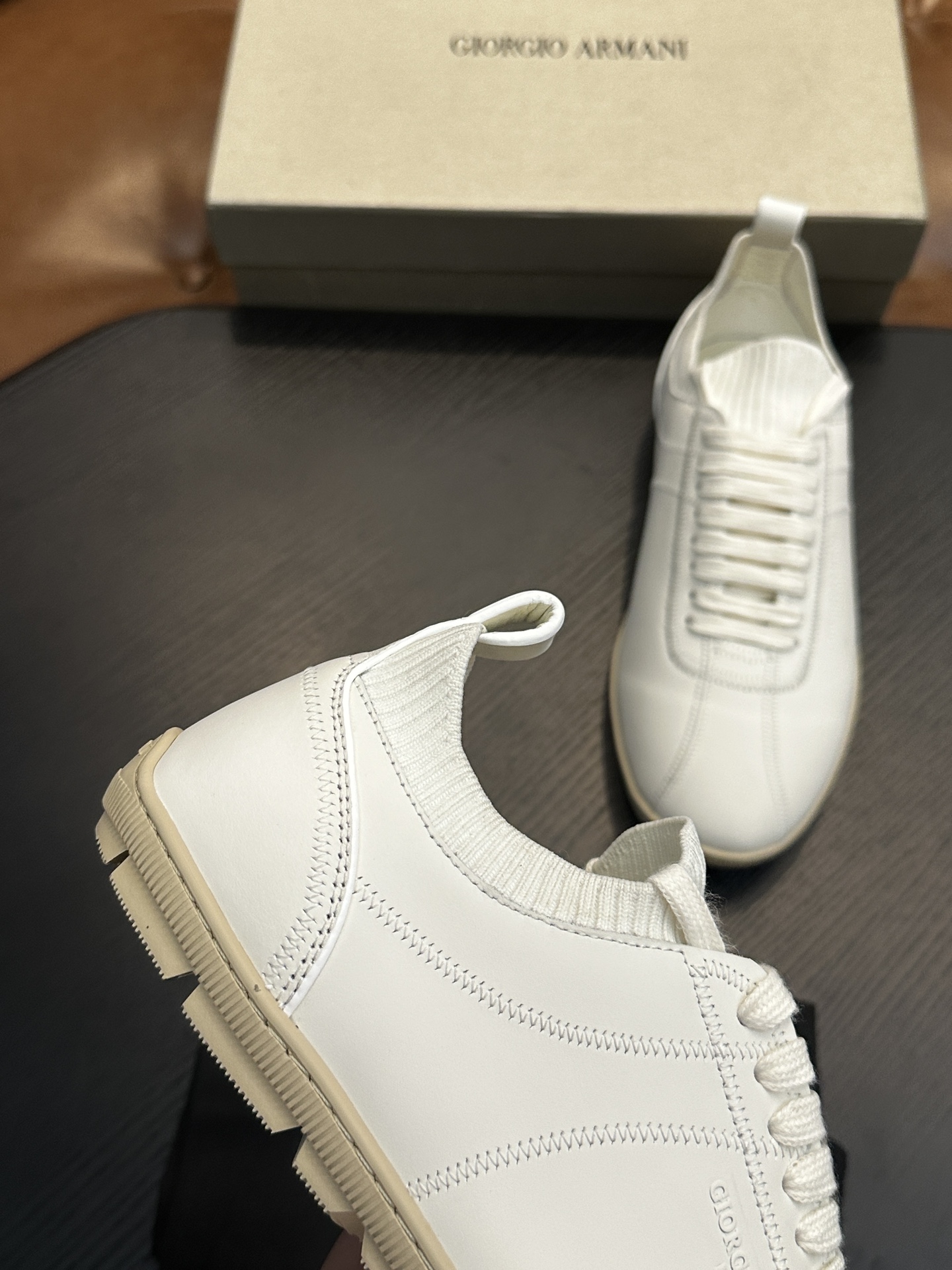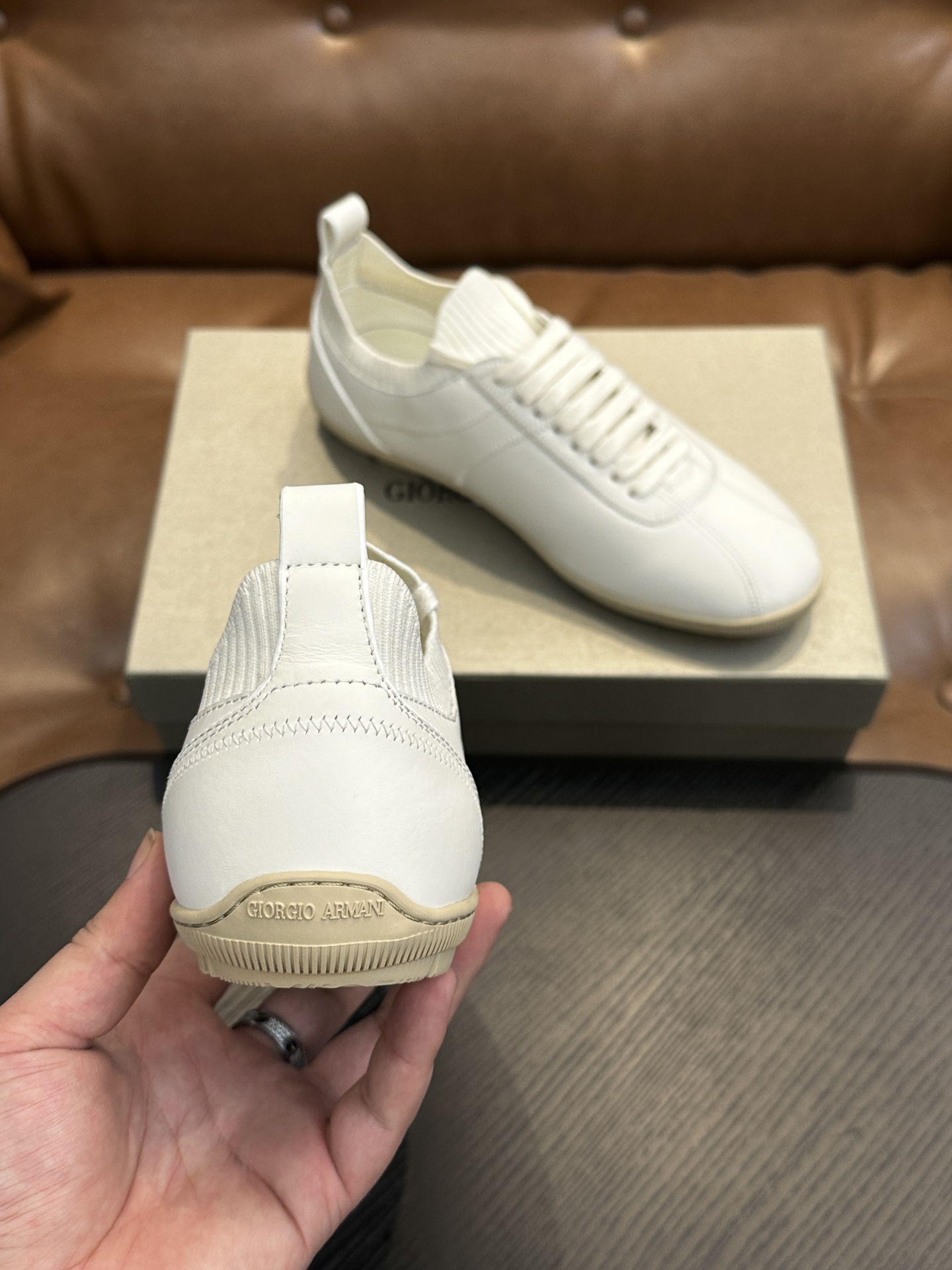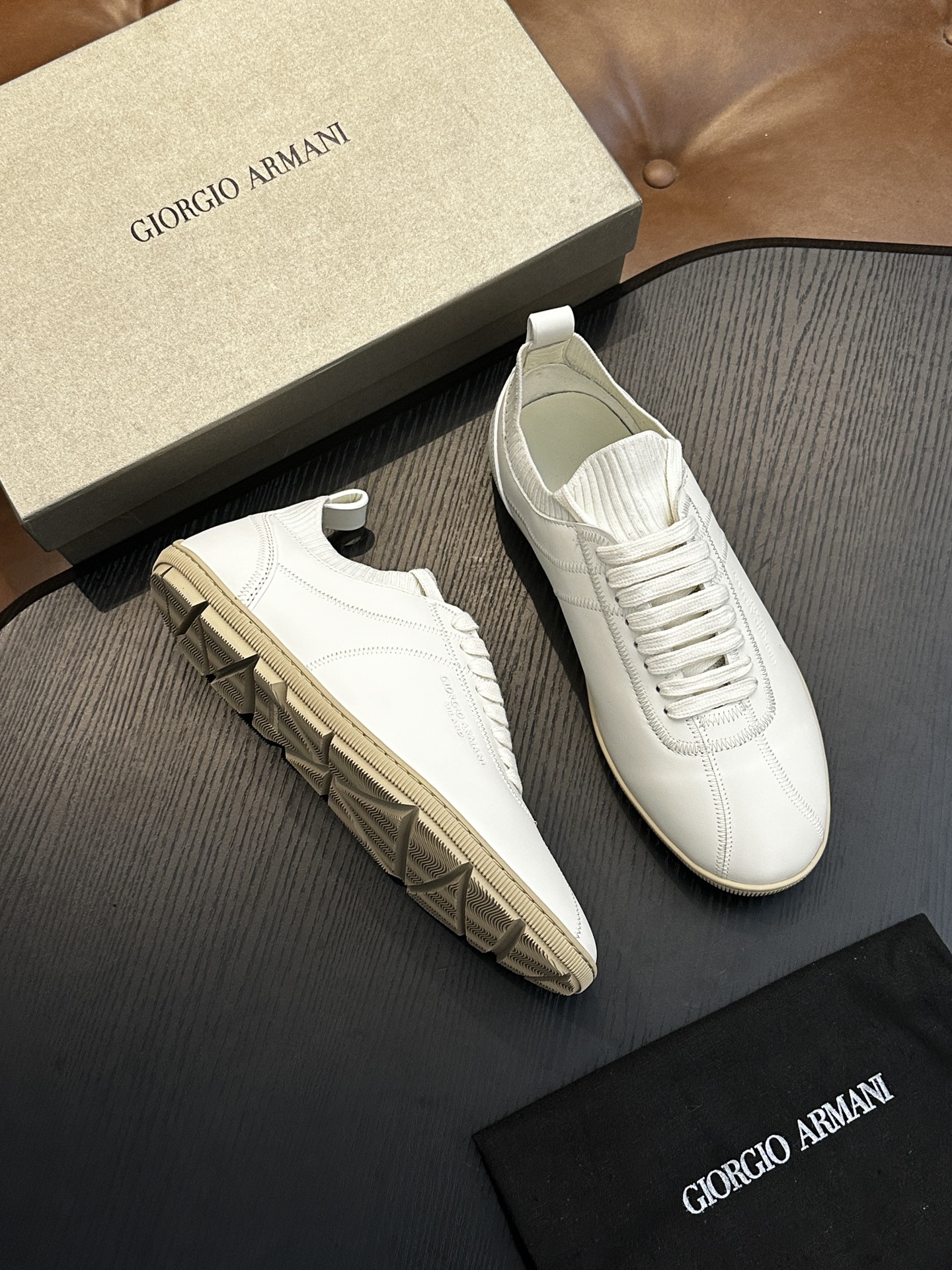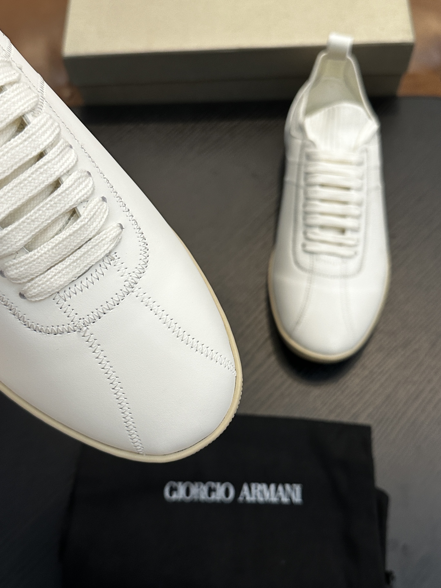 这款鞋子是AAAAA 1:1 质量 (非常棒). 使用了和原版一模一样的材料. 商标部分也保持了和阿玛尼/Armani一样. 图片拍摄是实物鞋子拍摄, 您所收到的实物保证和我们图片一模一样.