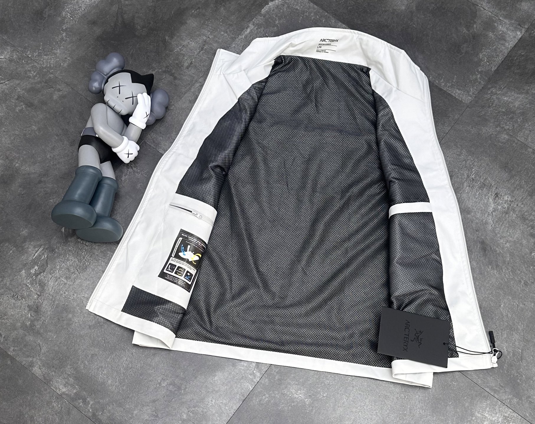 这款衣服是AAAAA 1:1 质量 (非常棒). 使用了和原版一模一样的材料. 商标部分也保持了和ARC'TERYX一样. 图片拍摄是实物衣服拍摄, 您所收到的实物保证和我们图片一模一样.