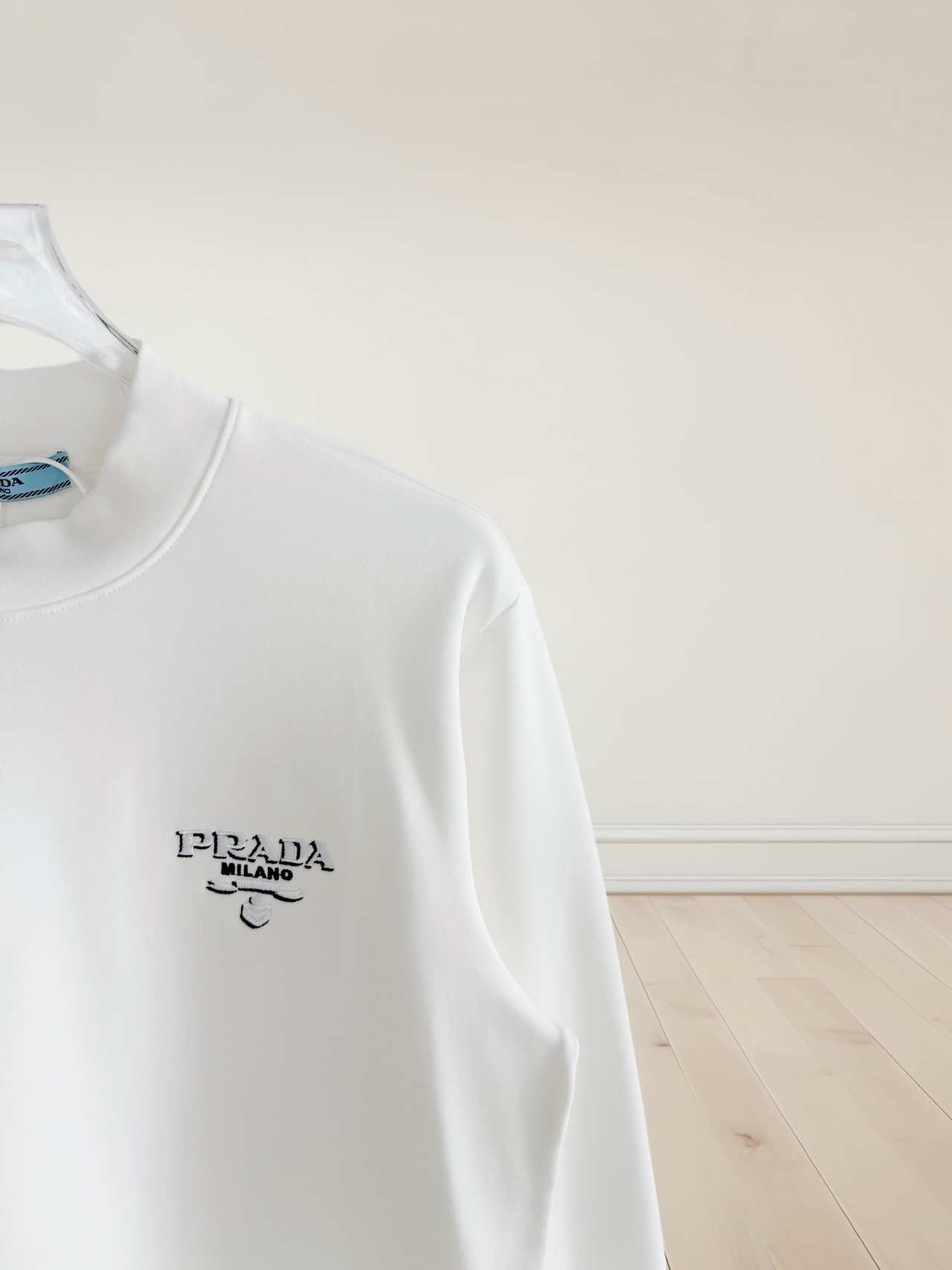 这款衣服是AAAAA 1:1 质量 (非常棒). 使用了和原版一模一样的材料. 商标部分也保持了和普拉达/Prada一样. 图片拍摄是实物衣服拍摄, 您所收到的实物保证和我们图片一模一样.