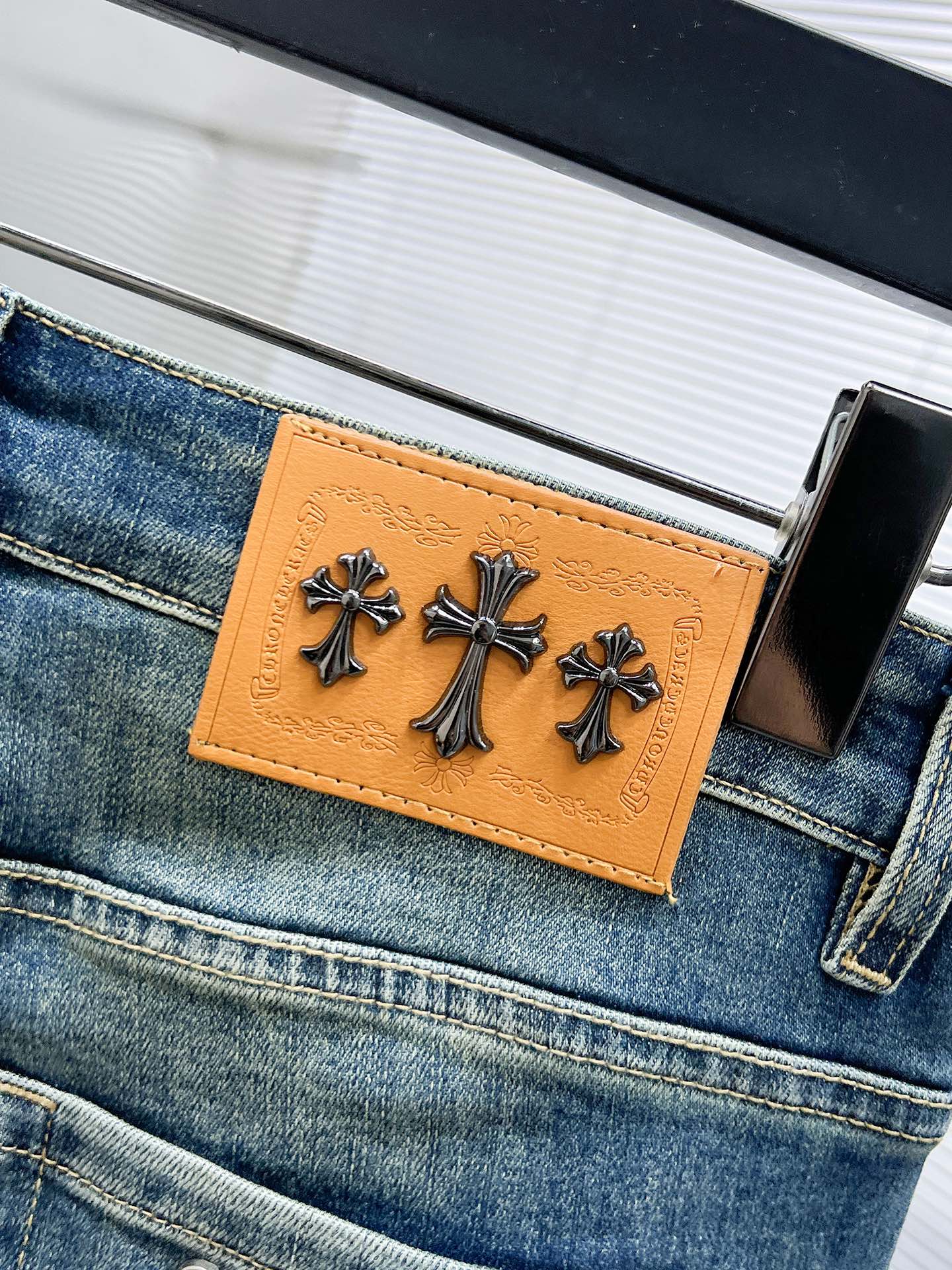 这款衣服是AAAAA 1:1 质量 (非常棒). 使用了和原版一模一样的材料. 商标部分也保持了和克罗心/Chrome Hearts一样. 图片拍摄是实物衣服拍摄, 您所收到的实物保证和我们图片一模一样.