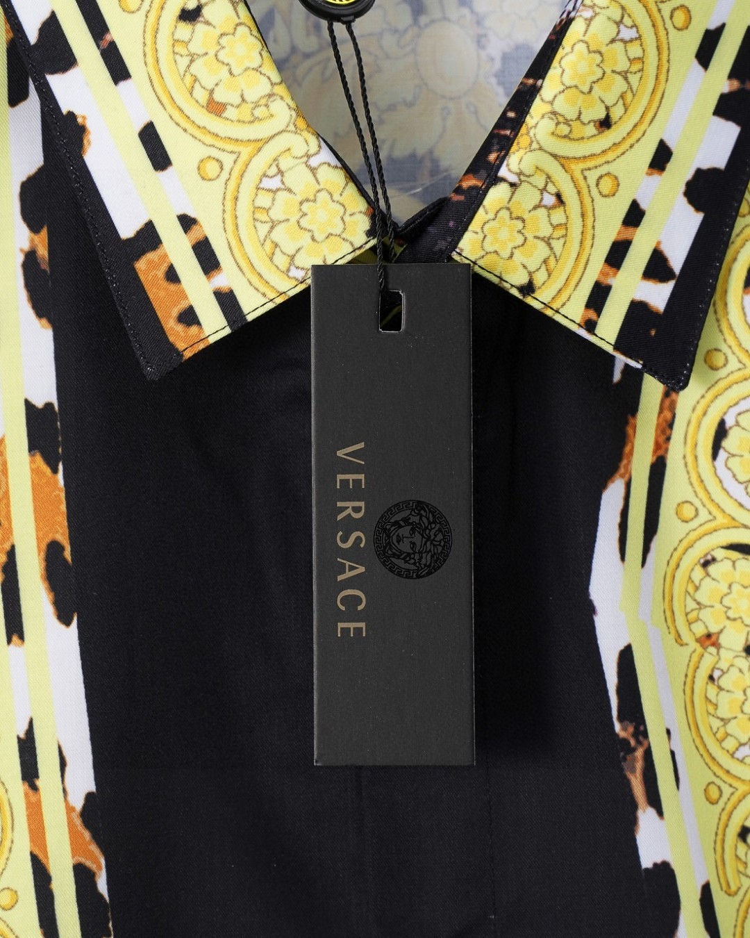 这款衣服是AAAAA 1:1 质量 (非常棒). 使用了和原版一模一样的材料. 商标部分也保持了和范思哲/Versace一样. 图片拍摄是实物衣服拍摄, 您所收到的实物保证和我们图片一模一样.