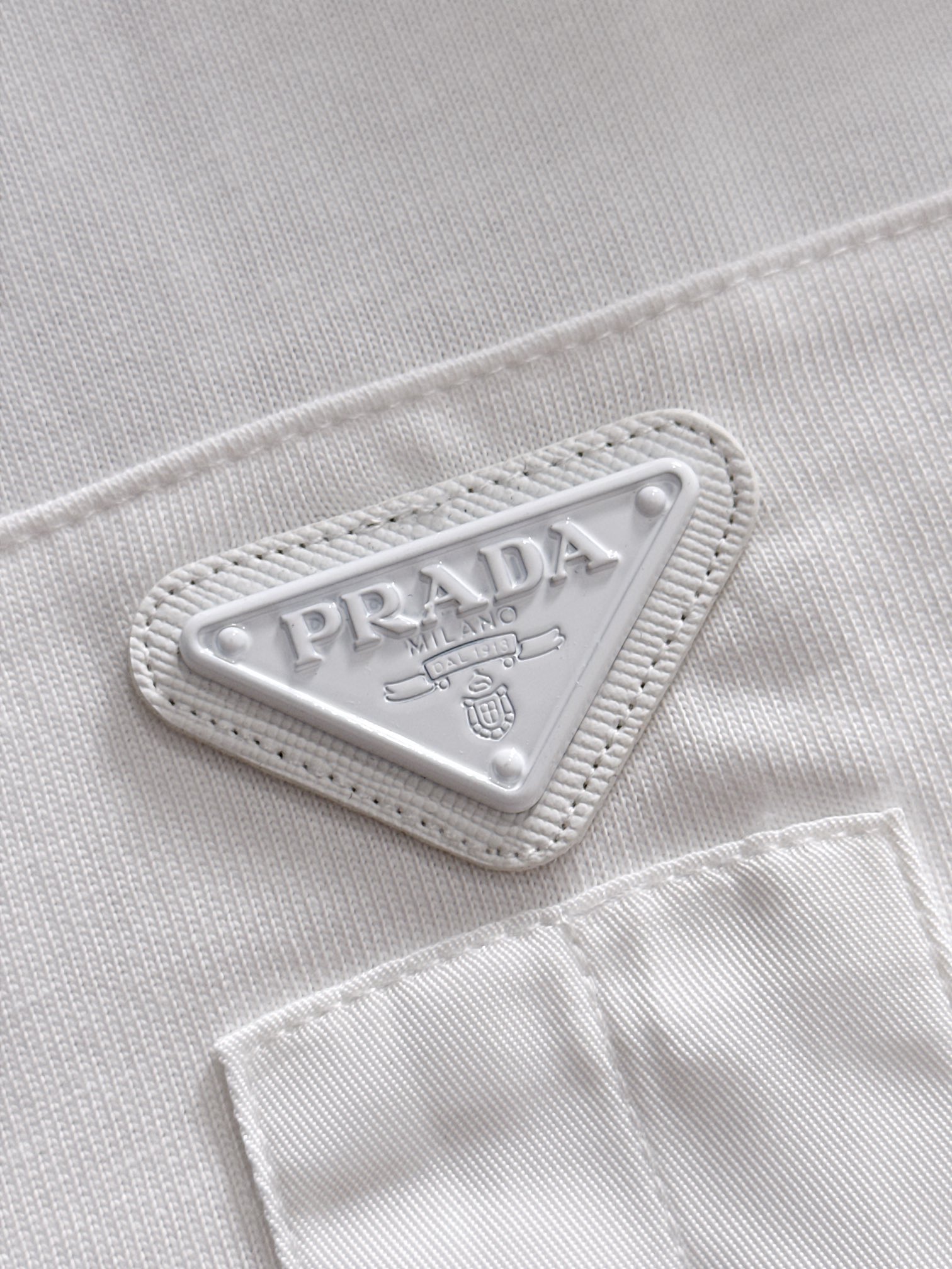 这款衣服是AAAAA 1:1 质量 (非常棒). 使用了和原版一模一样的材料. 商标部分也保持了和普拉达/Prada一样. 图片拍摄是实物衣服拍摄, 您所收到的实物保证和我们图片一模一样.