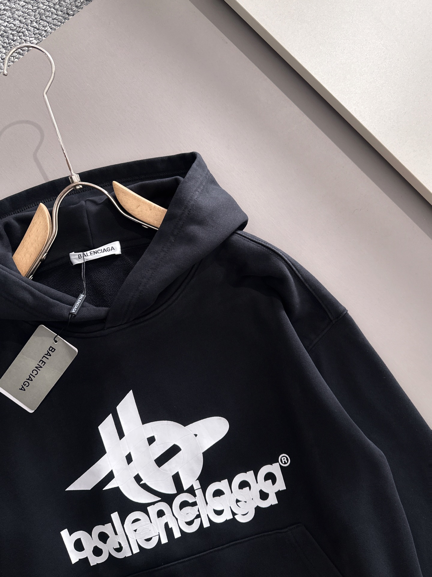 这款衣服是AAAAA 1:1 质量 (非常棒). 使用了和原版一模一样的材料. 商标部分也保持了和巴黎世家/Balenciaga一样. 图片拍摄是实物衣服拍摄, 您所收到的实物保证和我们图片一模一样.