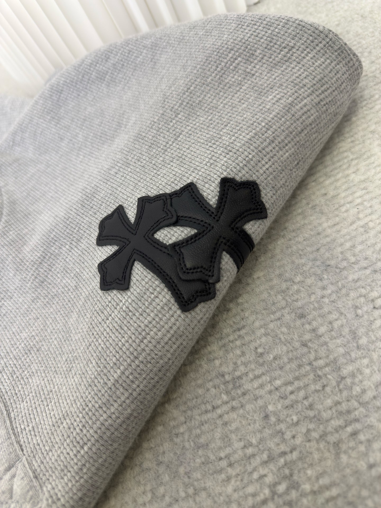 这款衣服是AAAAA 1:1 质量 (非常棒). 使用了和原版一模一样的材料. 商标部分也保持了和克罗心/Chrome Hearts一样. 图片拍摄是实物衣服拍摄, 您所收到的实物保证和我们图片一模一样.