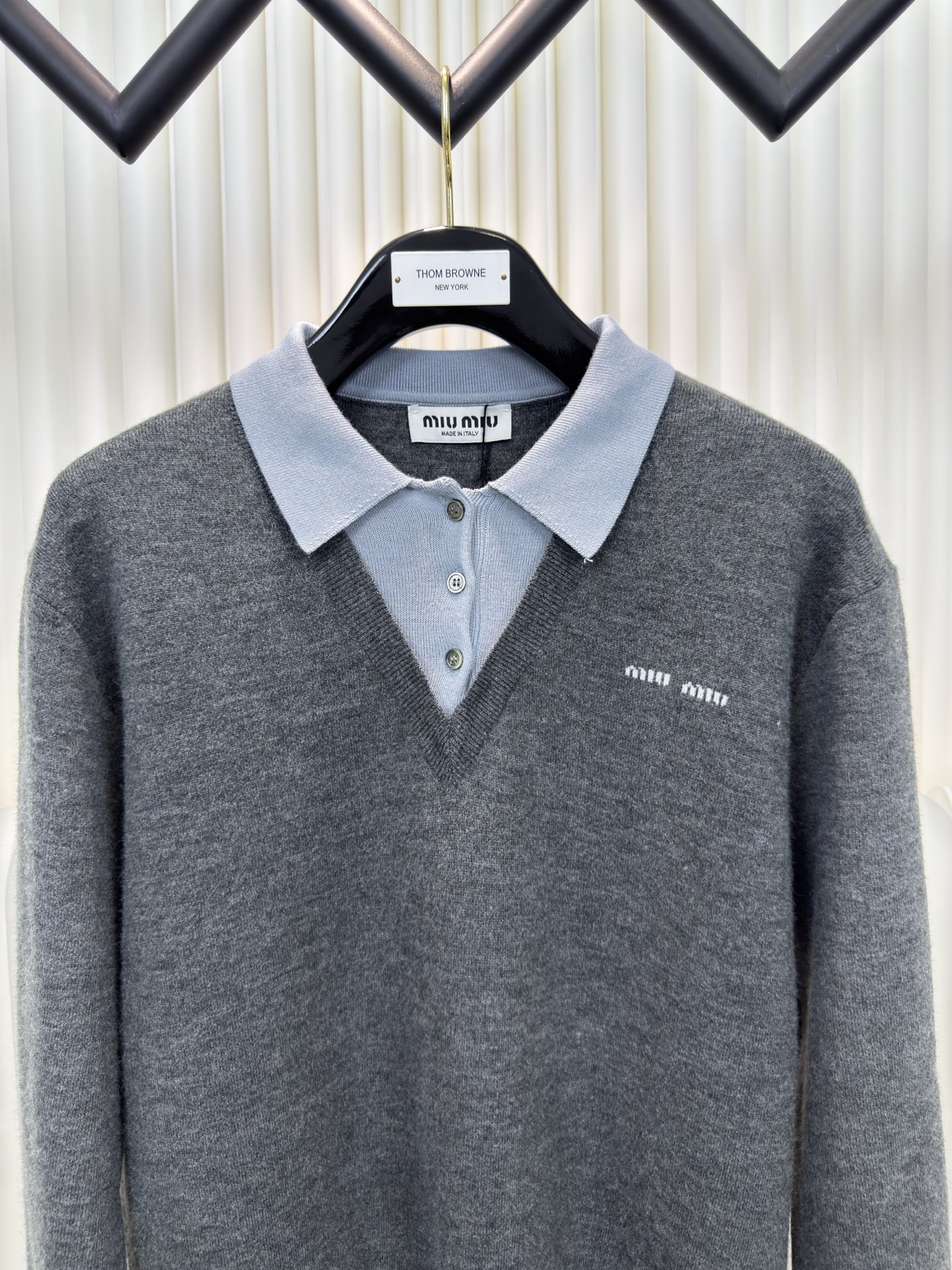 这款衣服是AAAAA 1:1 质量 (非常棒). 使用了和原版一模一样的材料. 商标部分也保持了和缪缪/Miu Miu一样. 图片拍摄是实物衣服拍摄, 您所收到的实物保证和我们图片一模一样.