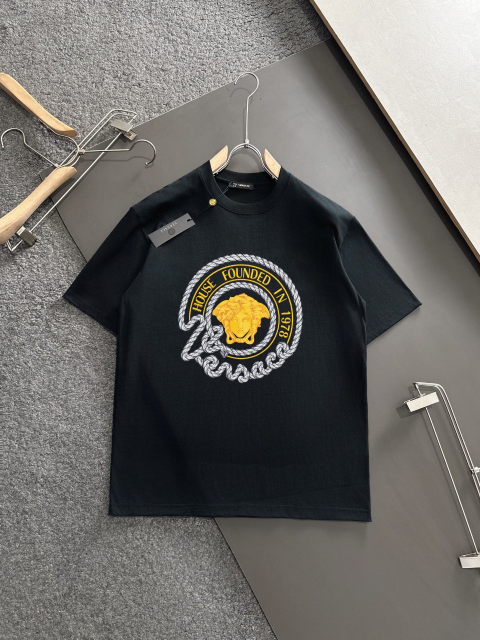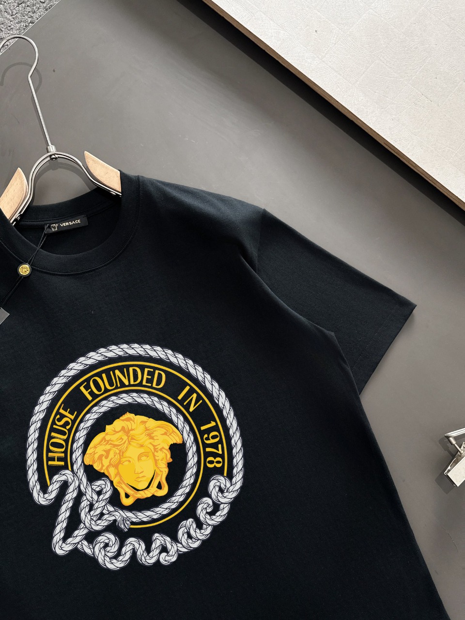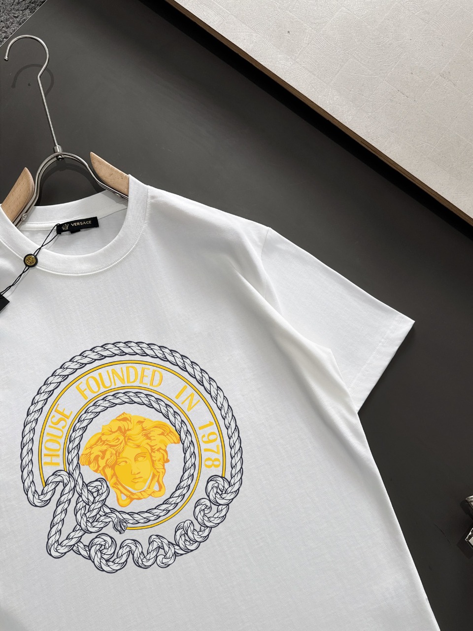 这款衣服是AAAAA 1:1 质量 (非常棒). 使用了和原版一模一样的材料. 商标部分也保持了和范思哲/Versace一样. 图片拍摄是实物衣服拍摄, 您所收到的实物保证和我们图片一模一样.