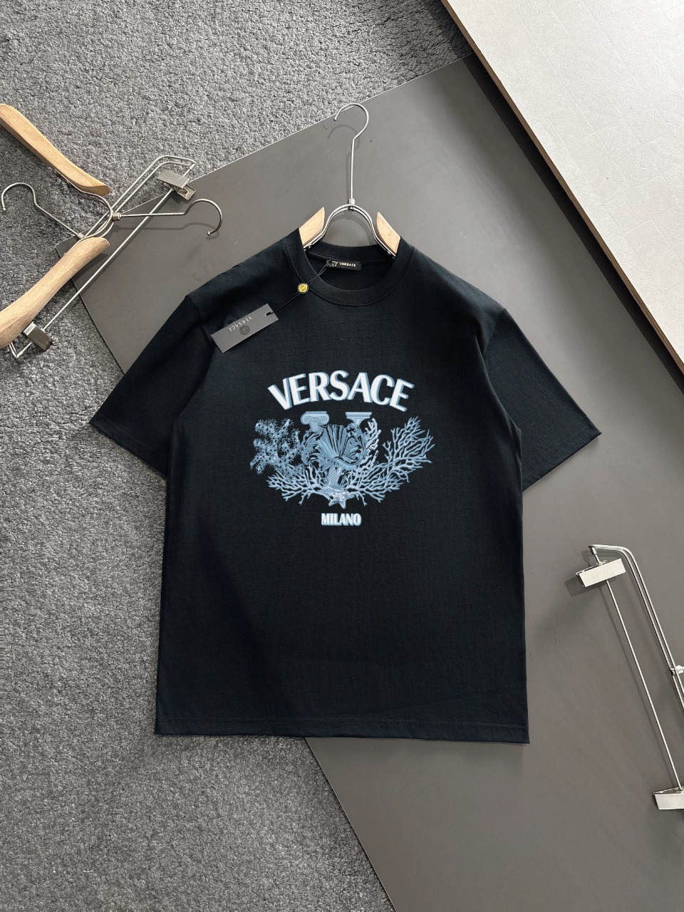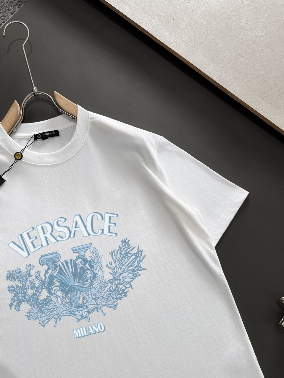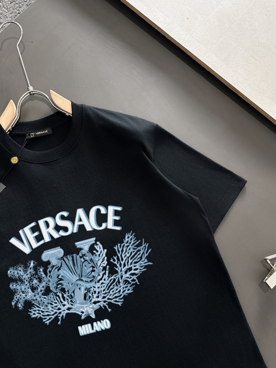 这款衣服是AAAAA 1:1 质量 (非常棒). 使用了和原版一模一样的材料. 商标部分也保持了和范思哲/Versace一样. 图片拍摄是实物衣服拍摄, 您所收到的实物保证和我们图片一模一样.