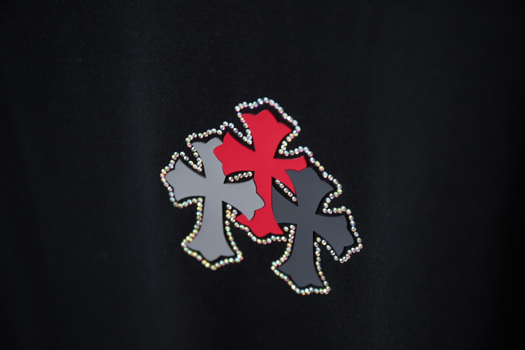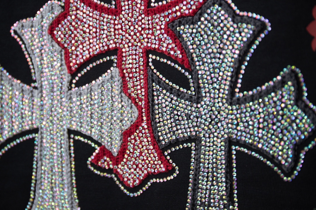 这款衣服是AAAAA 1:1 质量 (非常棒). 使用了和原版一模一样的材料. 商标部分也保持了和克罗心/Chrome Hearts一样. 图片拍摄是实物衣服拍摄, 您所收到的实物保证和我们图片一模一样.