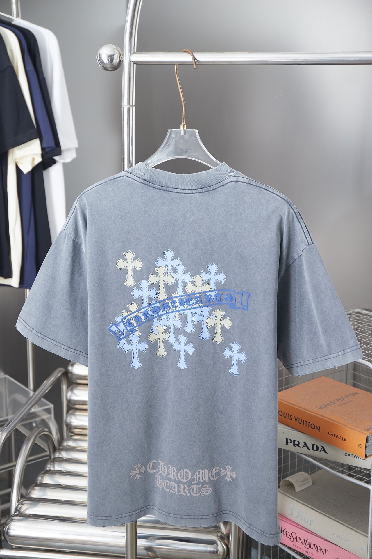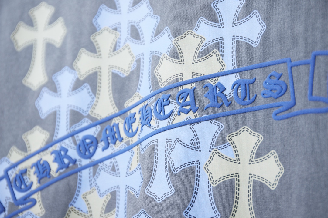 这款衣服是AAAAA 1:1 质量 (非常棒). 使用了和原版一模一样的材料. 商标部分也保持了和克罗心/Chrome Hearts一样. 图片拍摄是实物衣服拍摄, 您所收到的实物保证和我们图片一模一样.