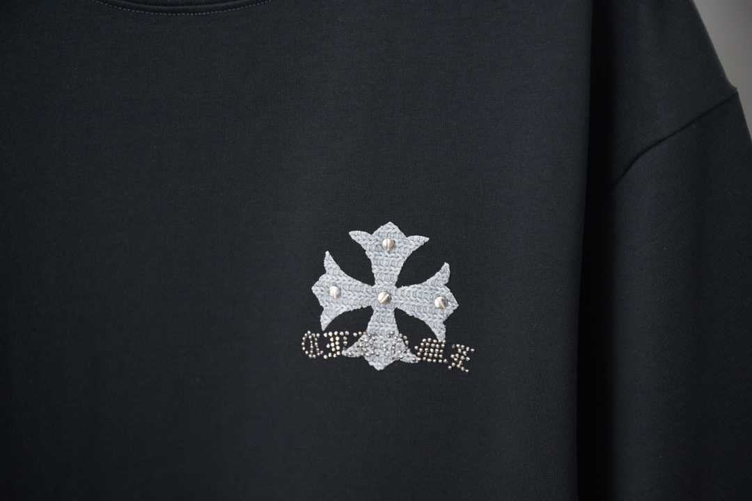这款衣服是AAAAA 1:1 质量 (非常棒). 使用了和原版一模一样的材料. 商标部分也保持了和克罗心/Chrome Hearts一样. 图片拍摄是实物衣服拍摄, 您所收到的实物保证和我们图片一模一样.