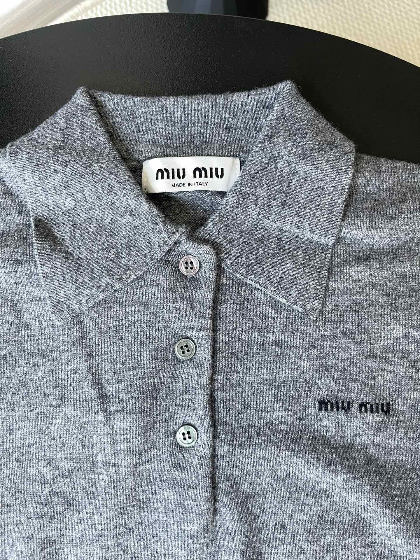这款衣服是AAAAA 1:1 质量 (非常棒). 使用了和原版一模一样的材料. 商标部分也保持了和缪缪/Miu Miu一样. 图片拍摄是实物衣服拍摄, 您所收到的实物保证和我们图片一模一样.