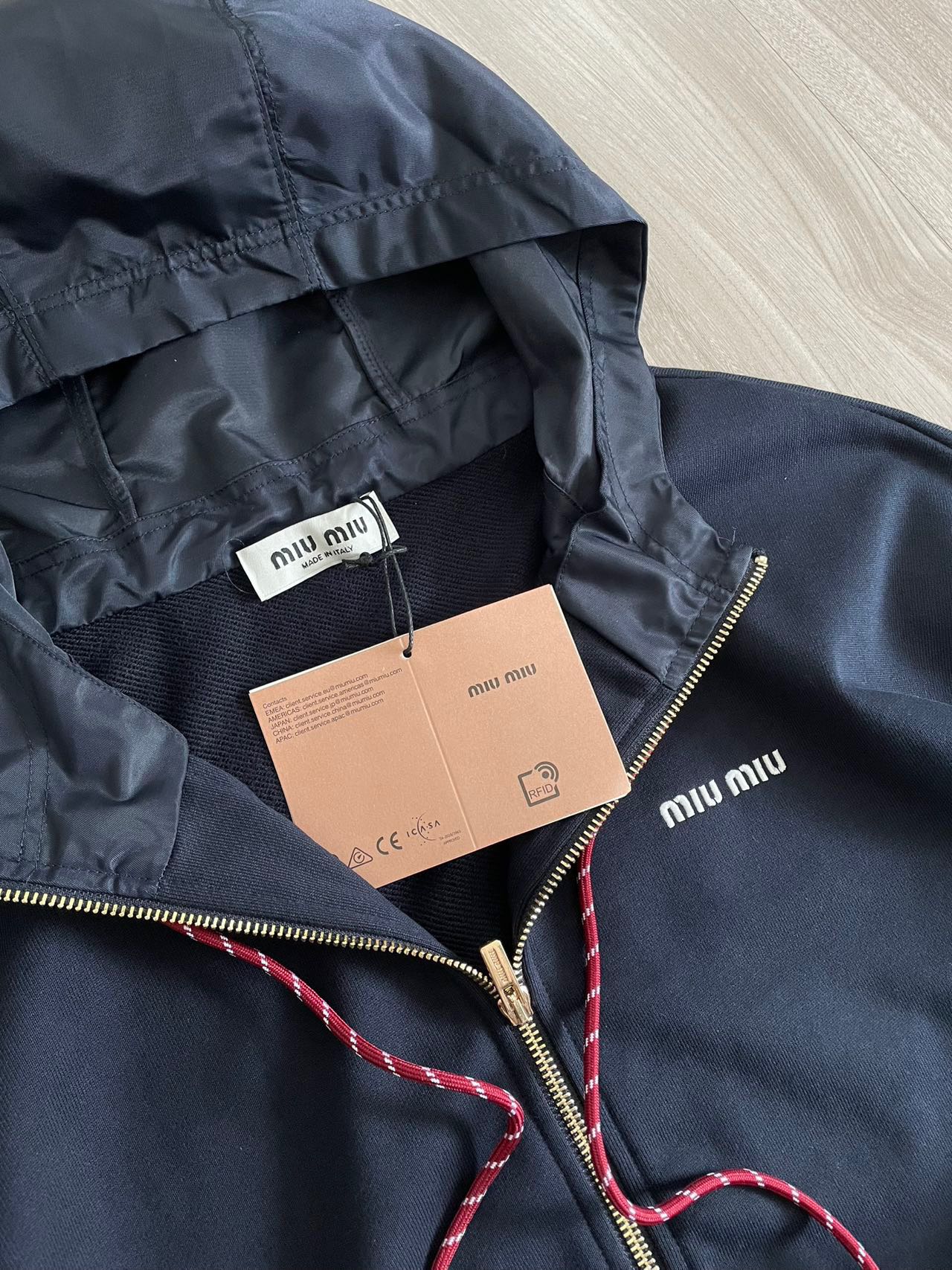 这款衣服是AAAAA 1:1 质量 (非常棒). 使用了和原版一模一样的材料. 商标部分也保持了和缪缪/Miu Miu一样. 图片拍摄是实物衣服拍摄, 您所收到的实物保证和我们图片一模一样.