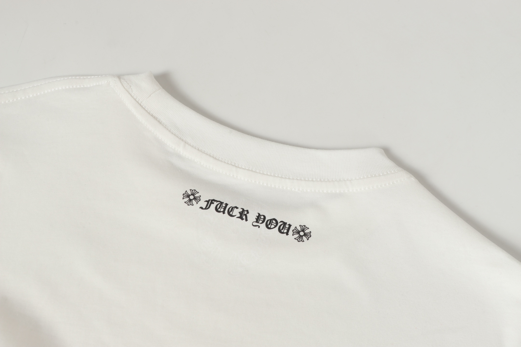 这款衣服是AAAAA 1:1 质量 (非常棒). 使用了和原版一模一样的材料. 商标部分也保持了和克罗心/Chrome Hearts一样. 图片拍摄是实物衣服拍摄, 您所收到的实物保证和我们图片一模一样.