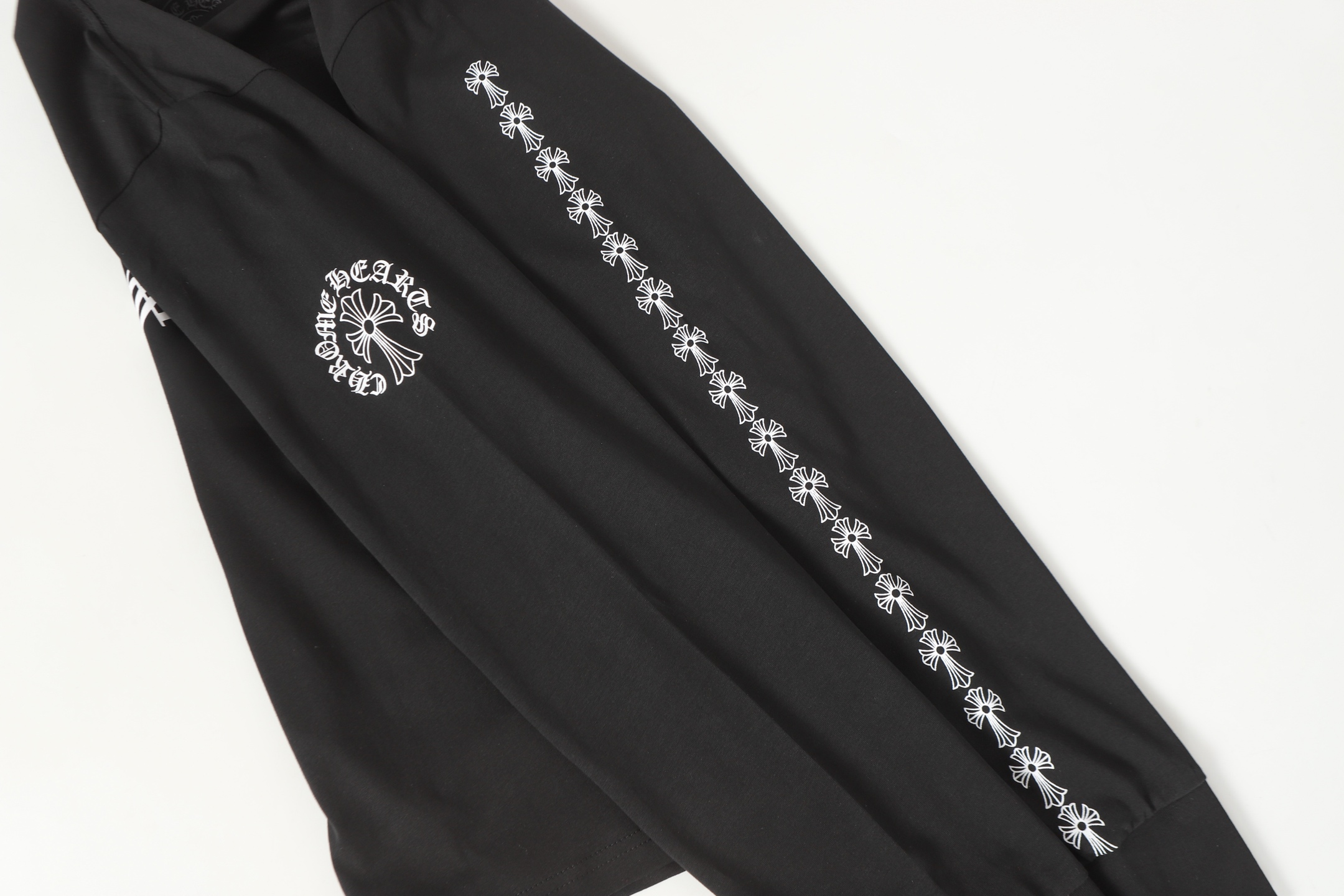 这款衣服是AAAAA 1:1 质量 (非常棒). 使用了和原版一模一样的材料. 商标部分也保持了和克罗心/Chrome Hearts一样. 图片拍摄是实物衣服拍摄, 您所收到的实物保证和我们图片一模一样.