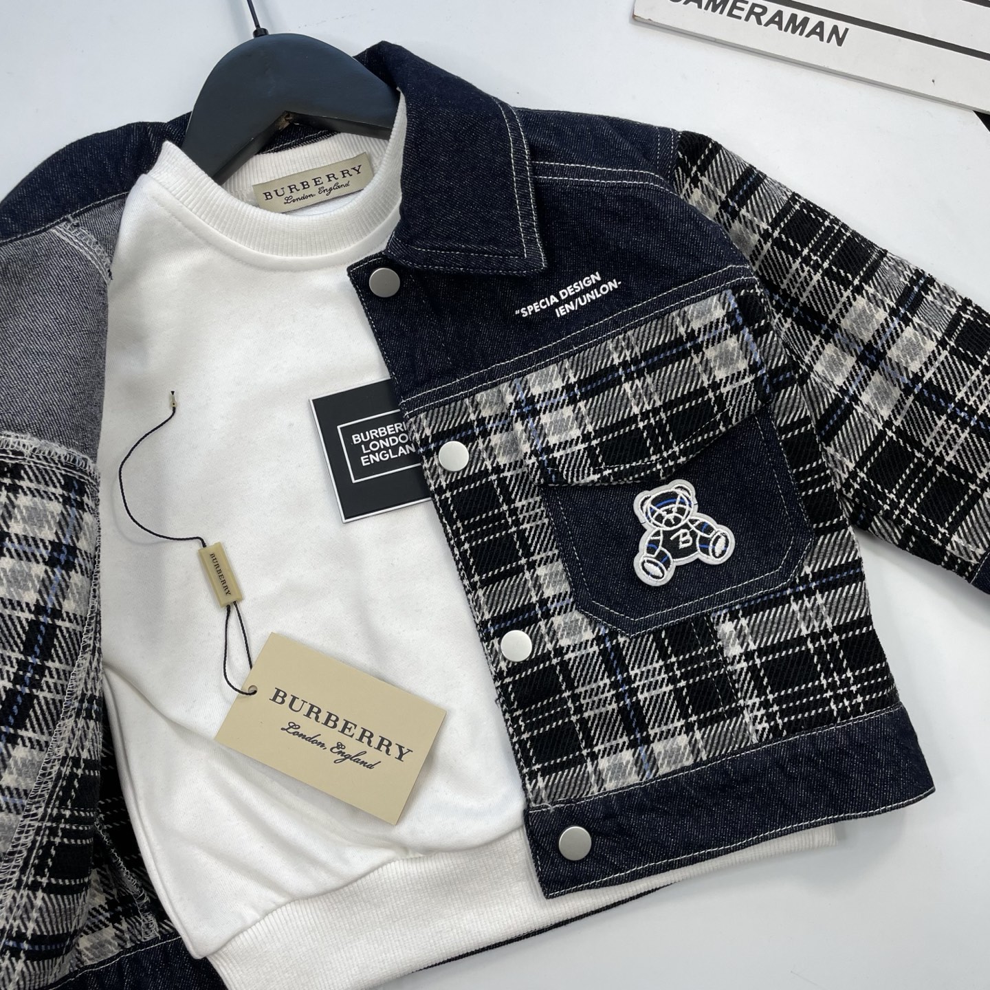 这款children's clothes是AAAAA 1:1 质量 (非常棒). 使用了和原版一模一样的材料. 商标部分也保持了和巴宝莉/Burberry一样. 图片拍摄是实物children's clothes拍摄, 您所收到的实物保证和我们图片一模一样.