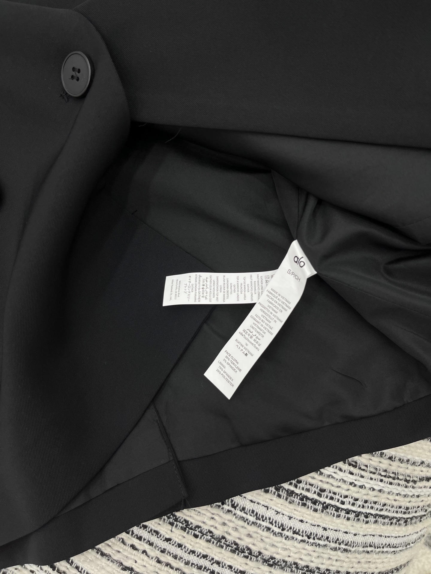 这款衣服是AAAAA 1:1 质量 (非常棒). 使用了和原版一模一样的材料. 商标部分也保持了和Alo Yoga一样. 图片拍摄是实物衣服拍摄, 您所收到的实物保证和我们图片一模一样.