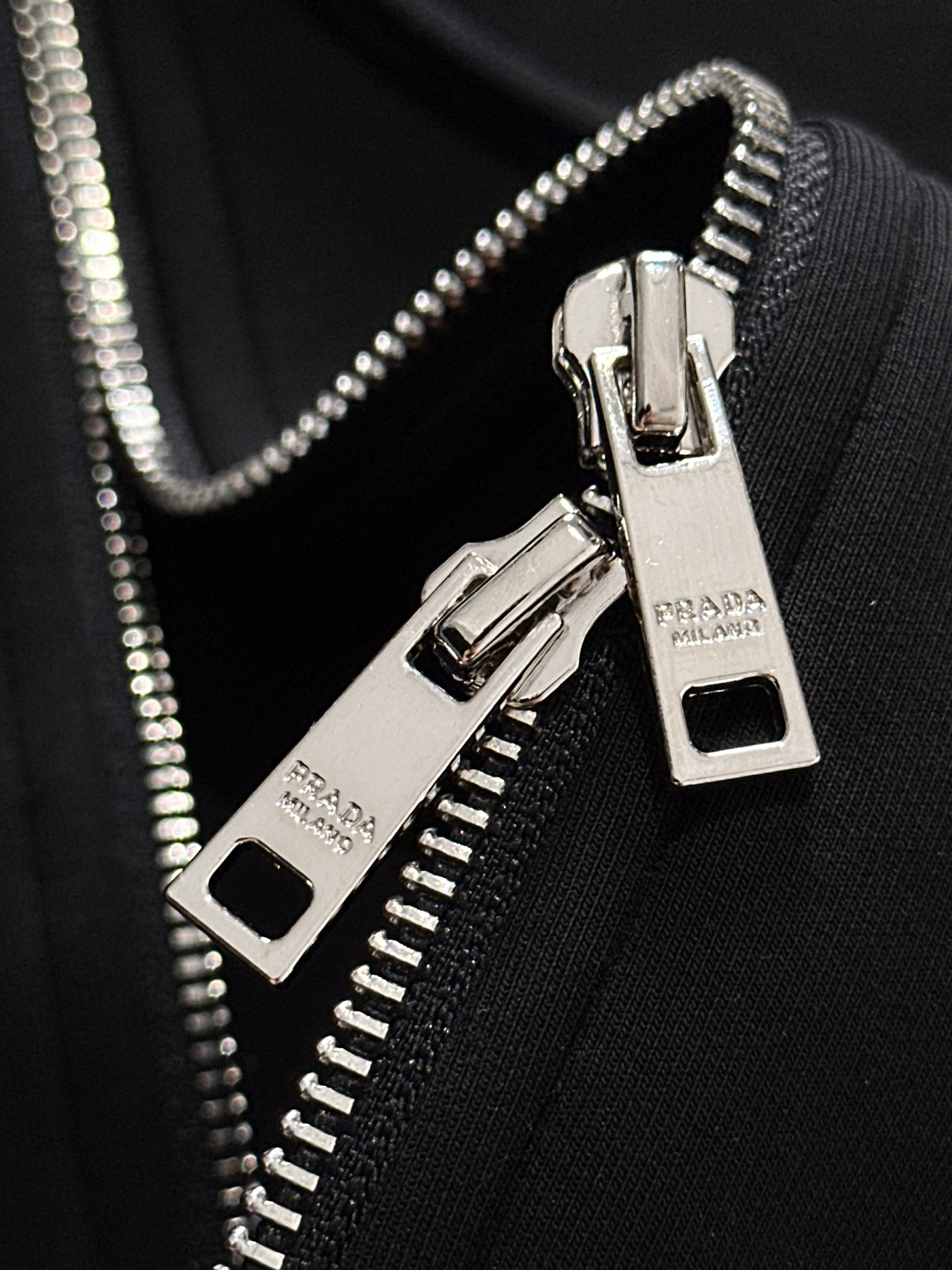 这款衣服是AAAAA 1:1 质量 (非常棒). 使用了和原版一模一样的材料. 商标部分也保持了和普拉达/Prada一样. 图片拍摄是实物衣服拍摄, 您所收到的实物保证和我们图片一模一样.