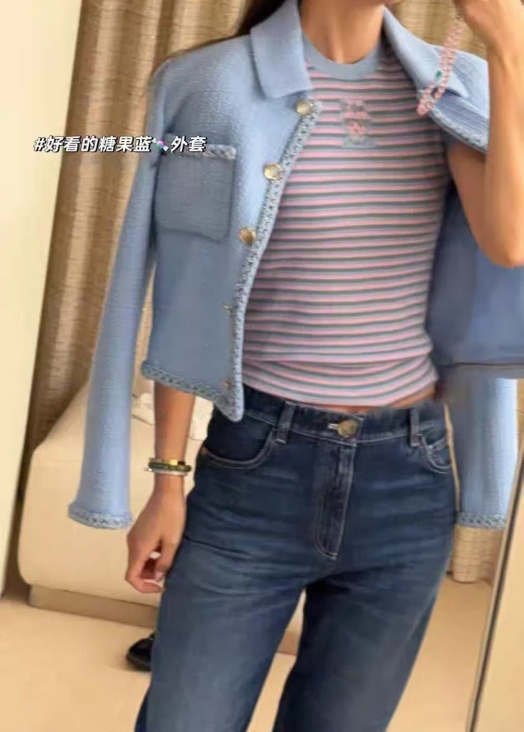 这款衣服是AAAAA 1:1 质量 (非常棒). 使用了和原版一模一样的材料. 商标部分也保持了和香奈儿/Chanel一样. 图片拍摄是实物衣服拍摄, 您所收到的实物保证和我们图片一模一样.