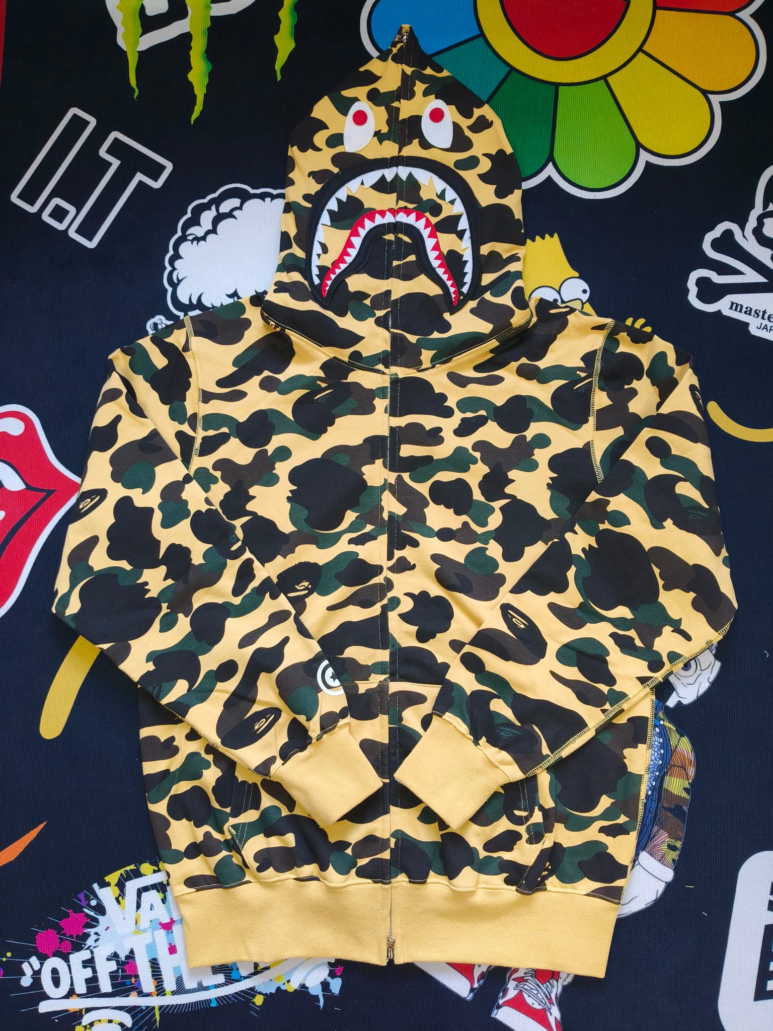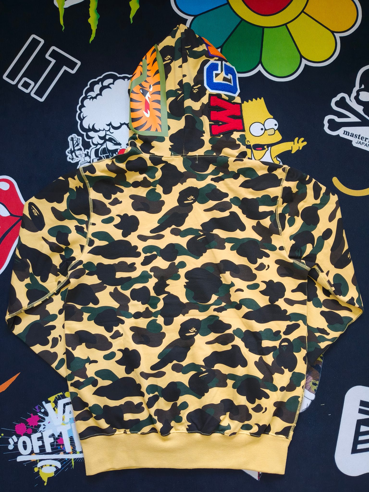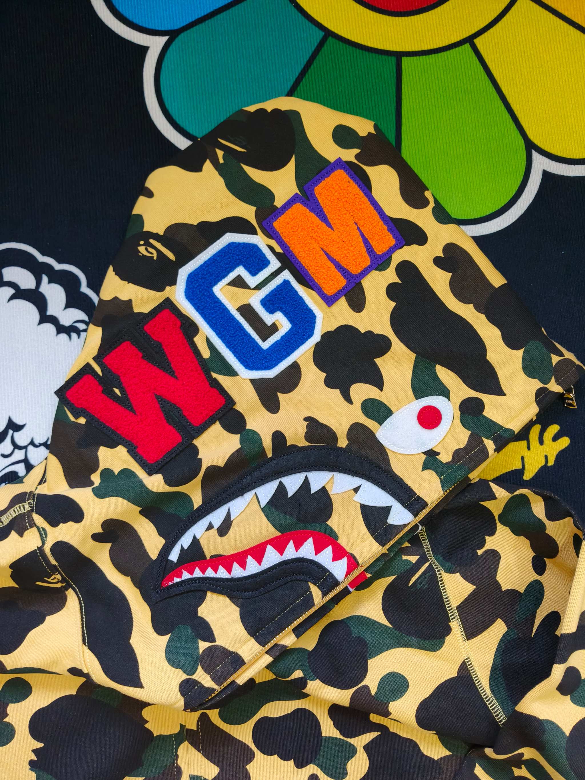 这款衣服是AAAAA 1:1 质量 (非常棒). 使用了和原版一模一样的材料. 商标部分也保持了和Bape一样. 图片拍摄是实物衣服拍摄, 您所收到的实物保证和我们图片一模一样.