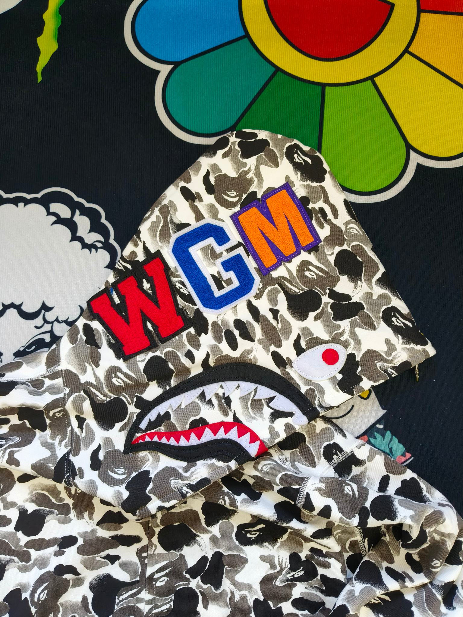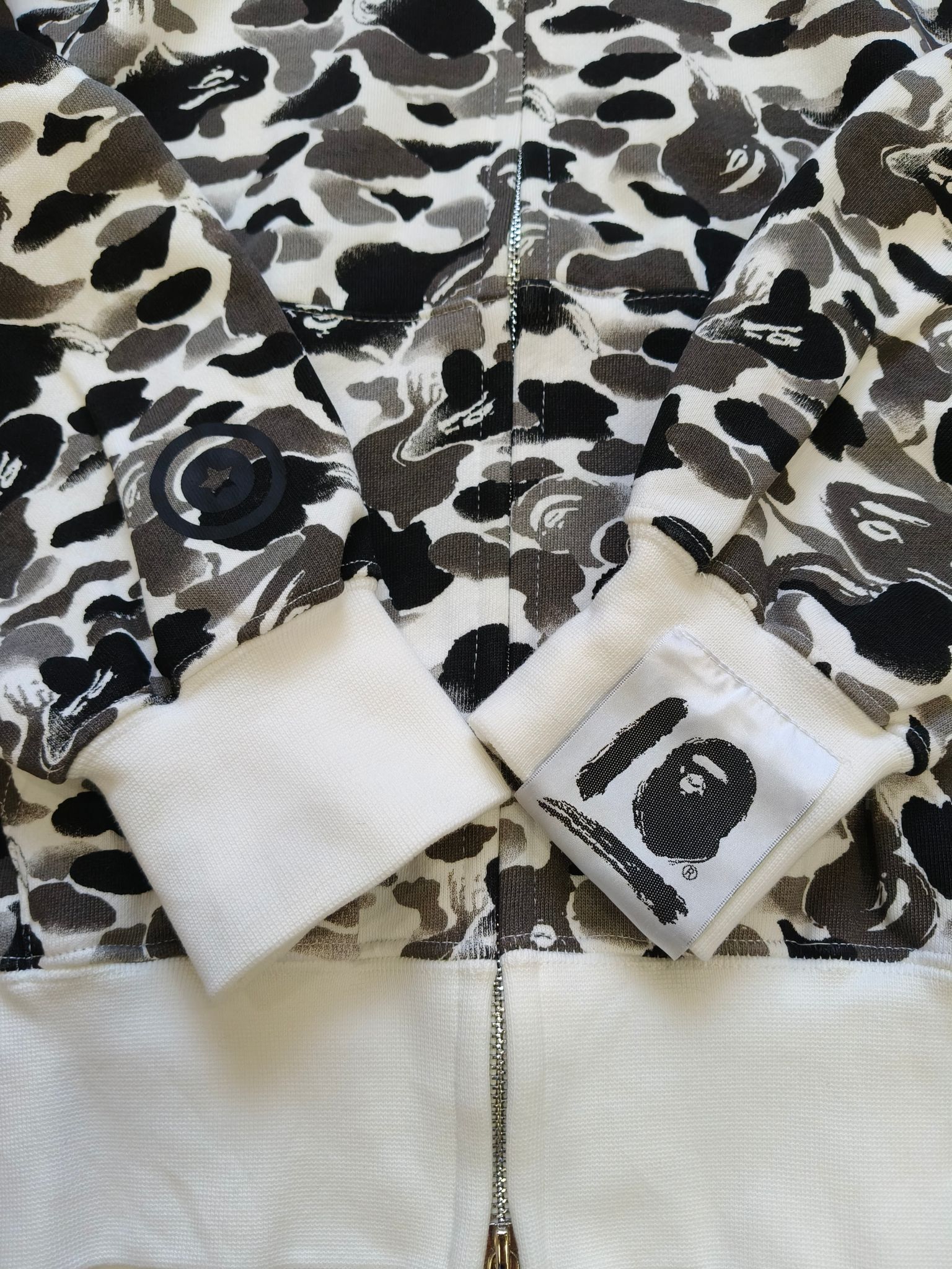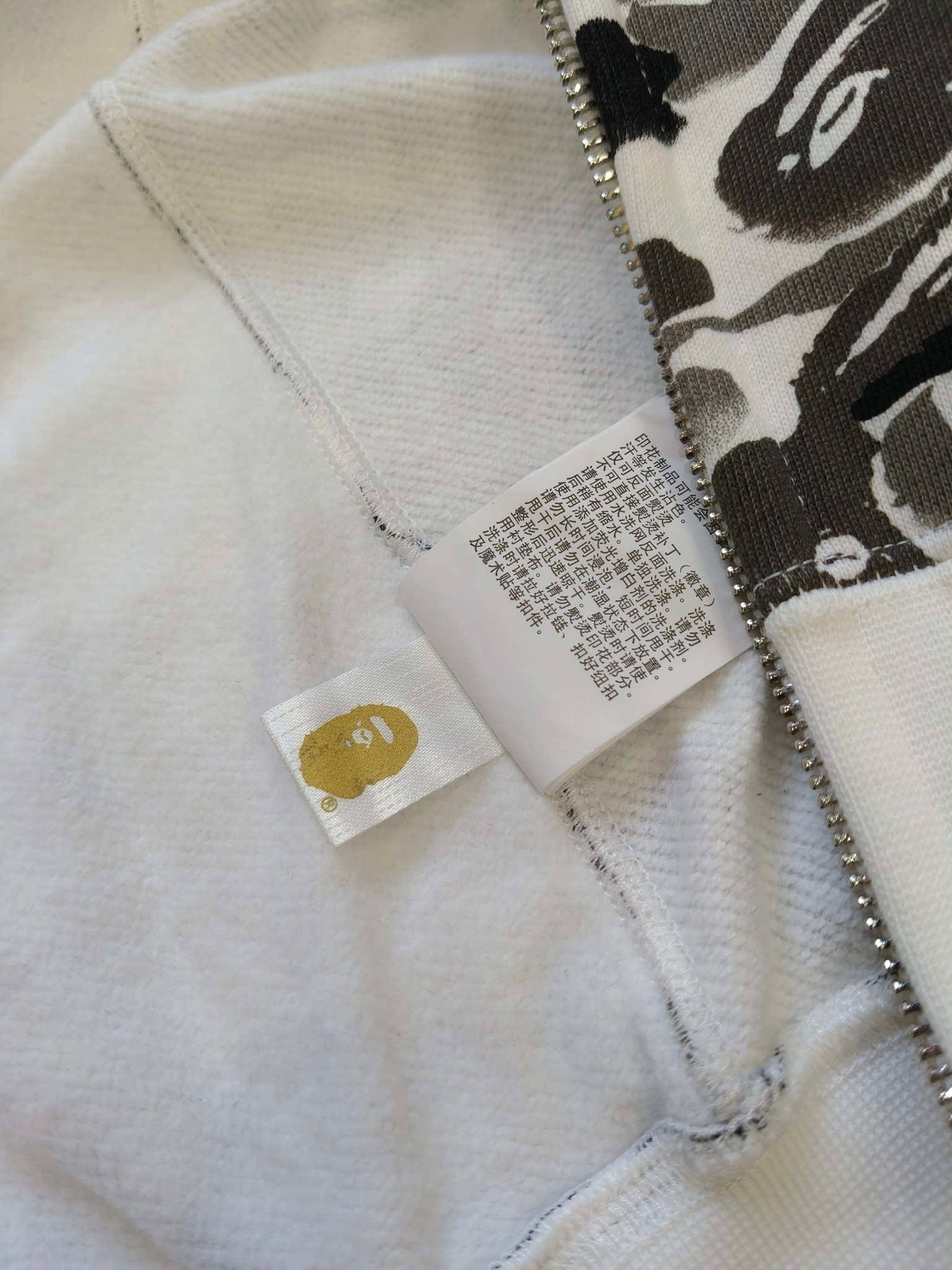 这款衣服是AAAAA 1:1 质量 (非常棒). 使用了和原版一模一样的材料. 商标部分也保持了和Bape一样. 图片拍摄是实物衣服拍摄, 您所收到的实物保证和我们图片一模一样.