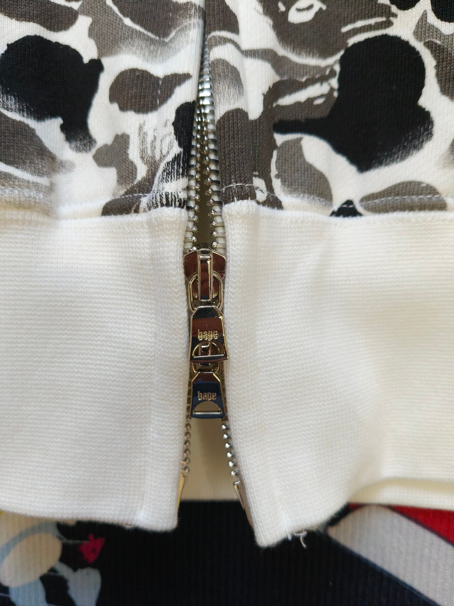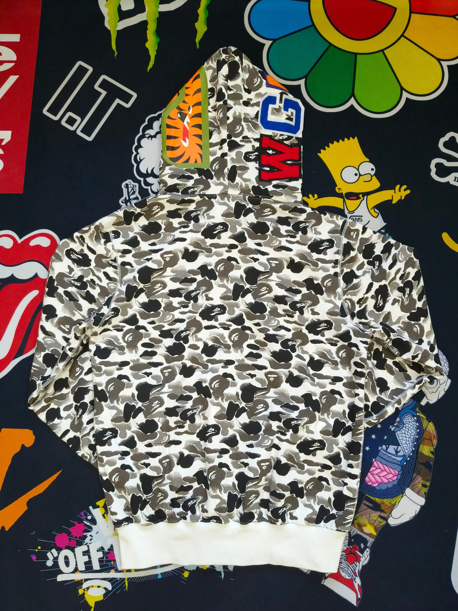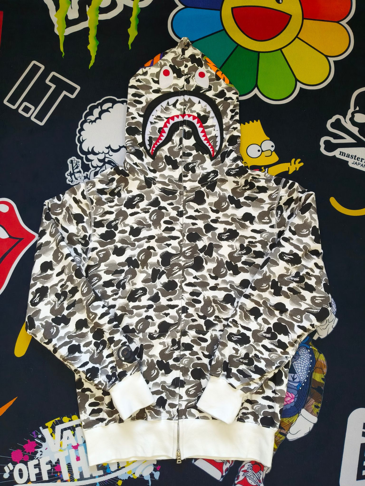 这款衣服是AAAAA 1:1 质量 (非常棒). 使用了和原版一模一样的材料. 商标部分也保持了和Bape一样. 图片拍摄是实物衣服拍摄, 您所收到的实物保证和我们图片一模一样.