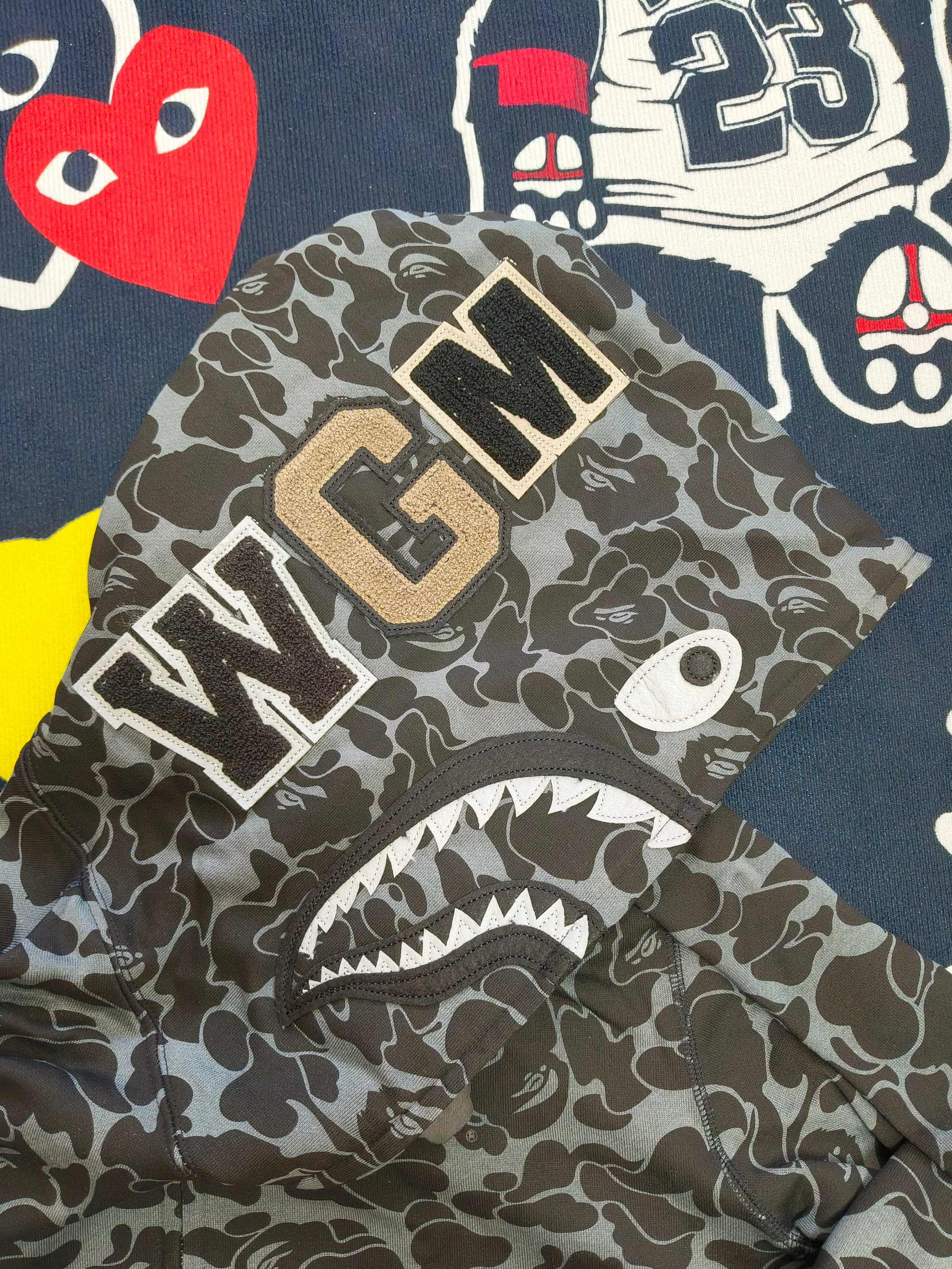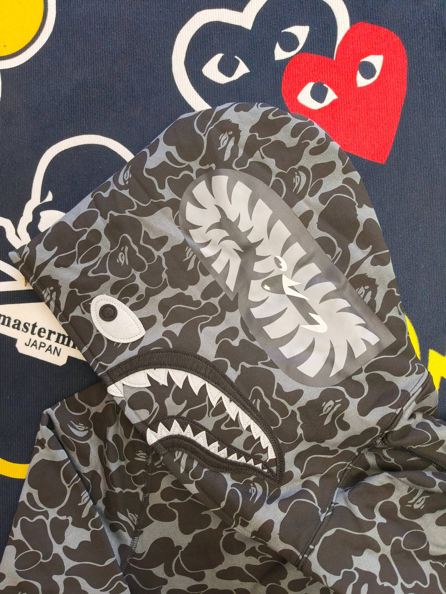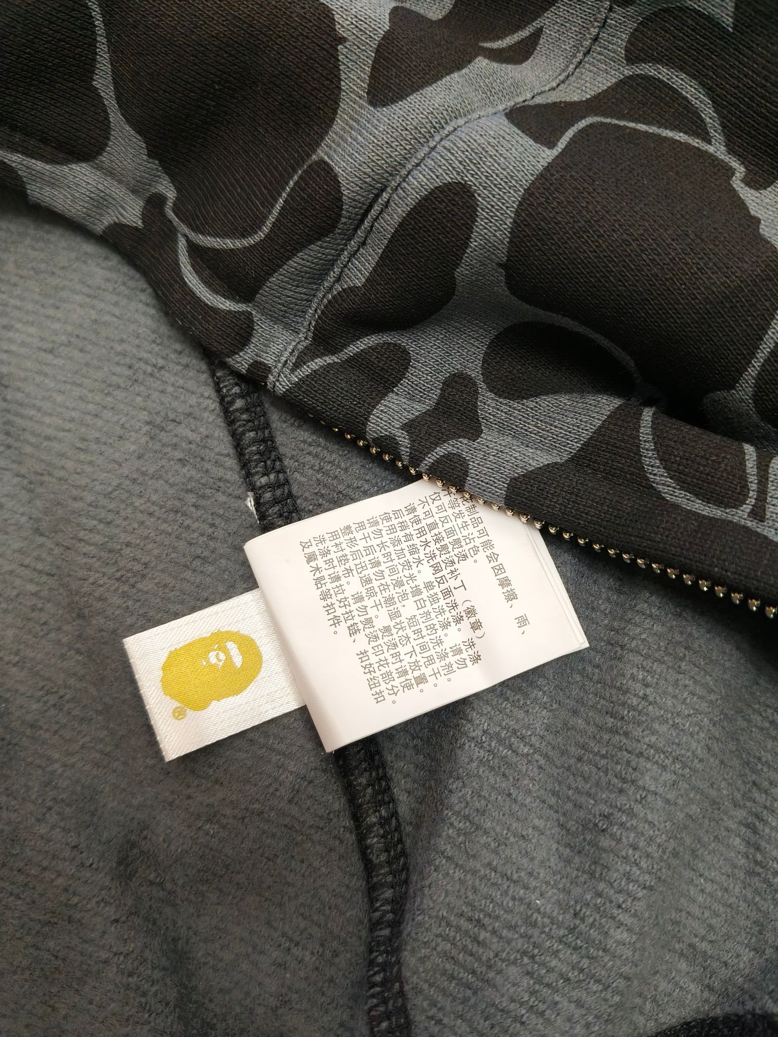 这款衣服是AAAAA 1:1 质量 (非常棒). 使用了和原版一模一样的材料. 商标部分也保持了和Bape一样. 图片拍摄是实物衣服拍摄, 您所收到的实物保证和我们图片一模一样.