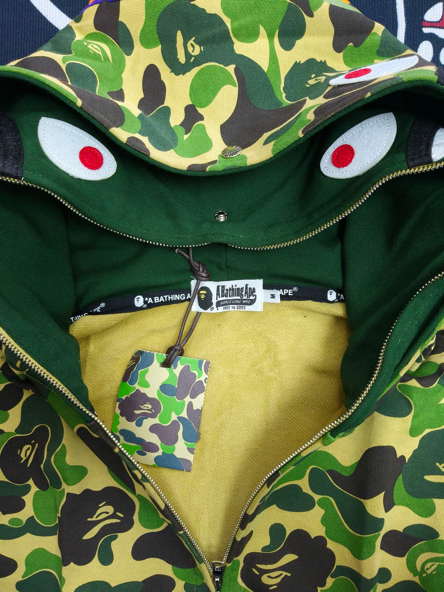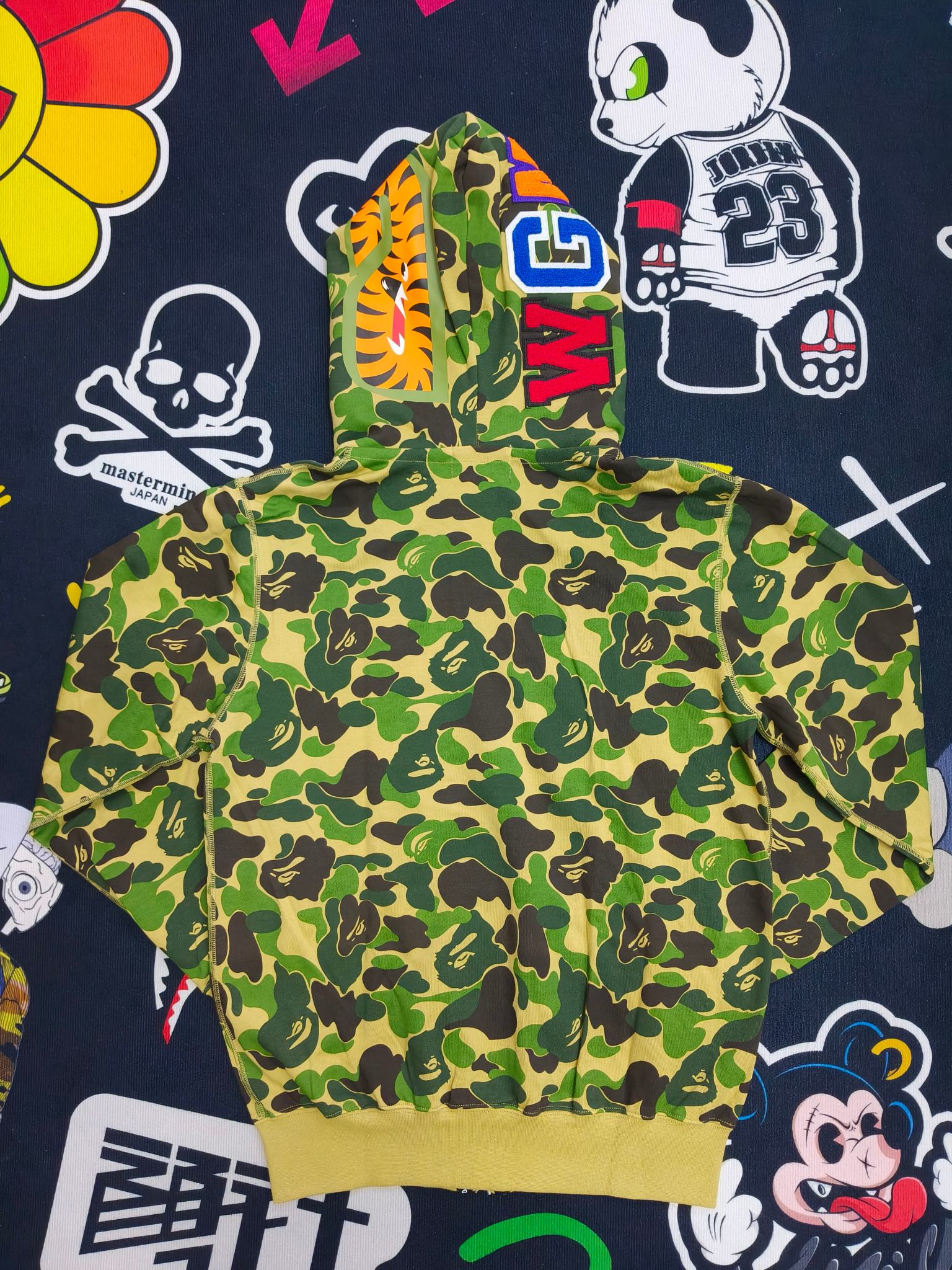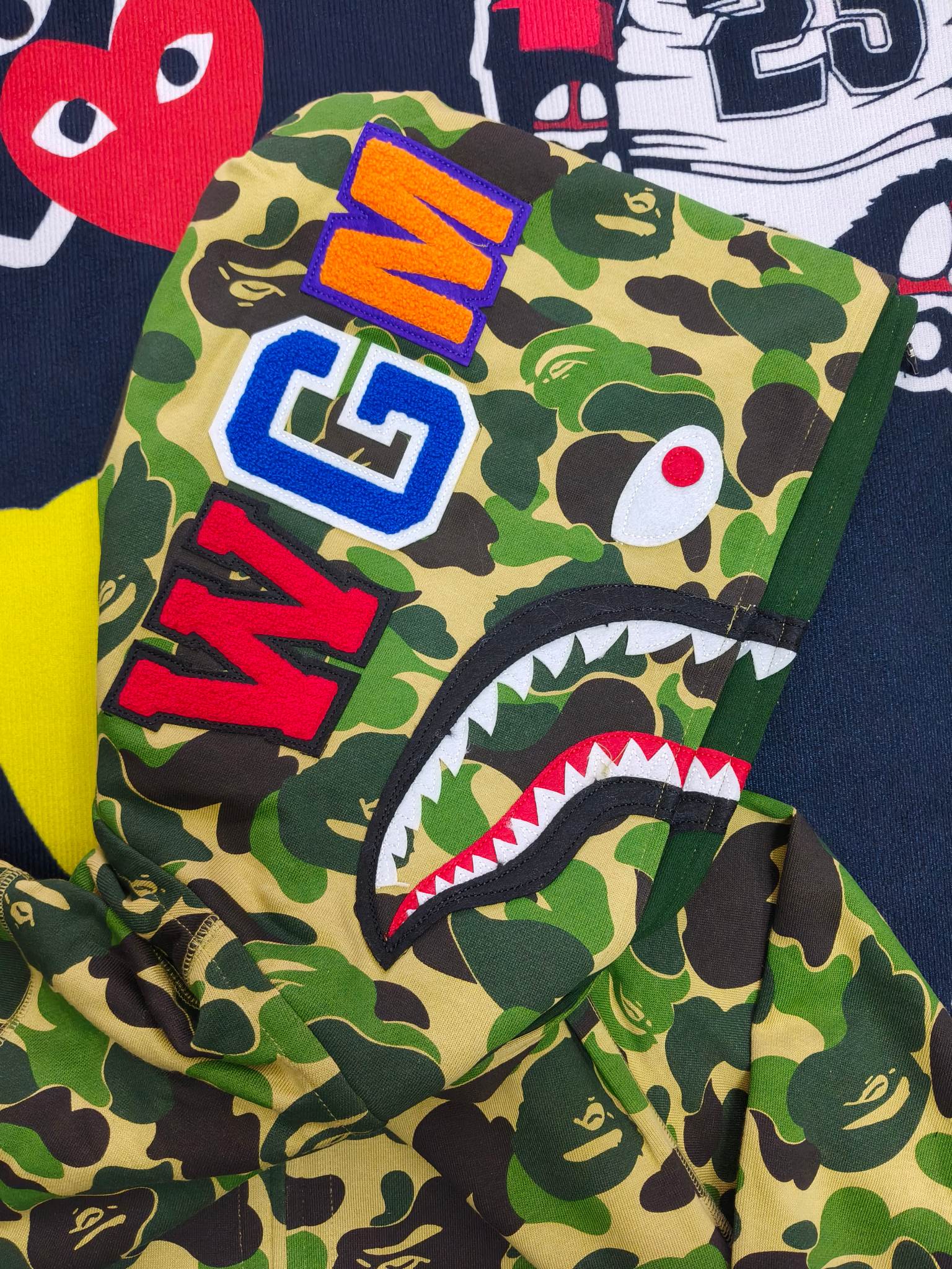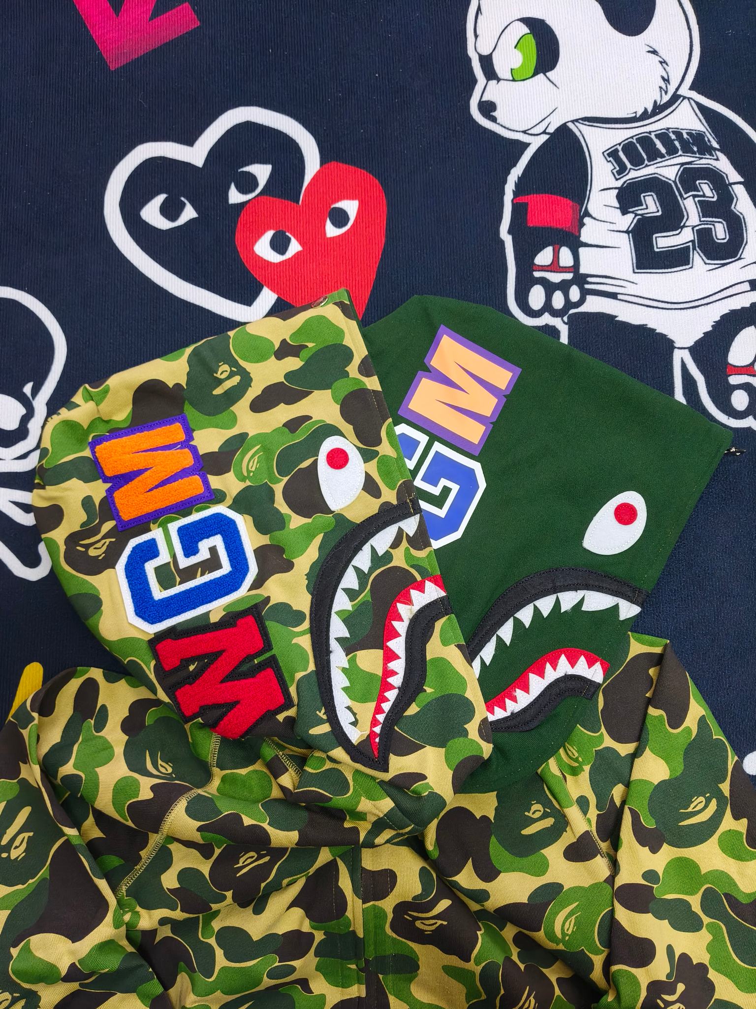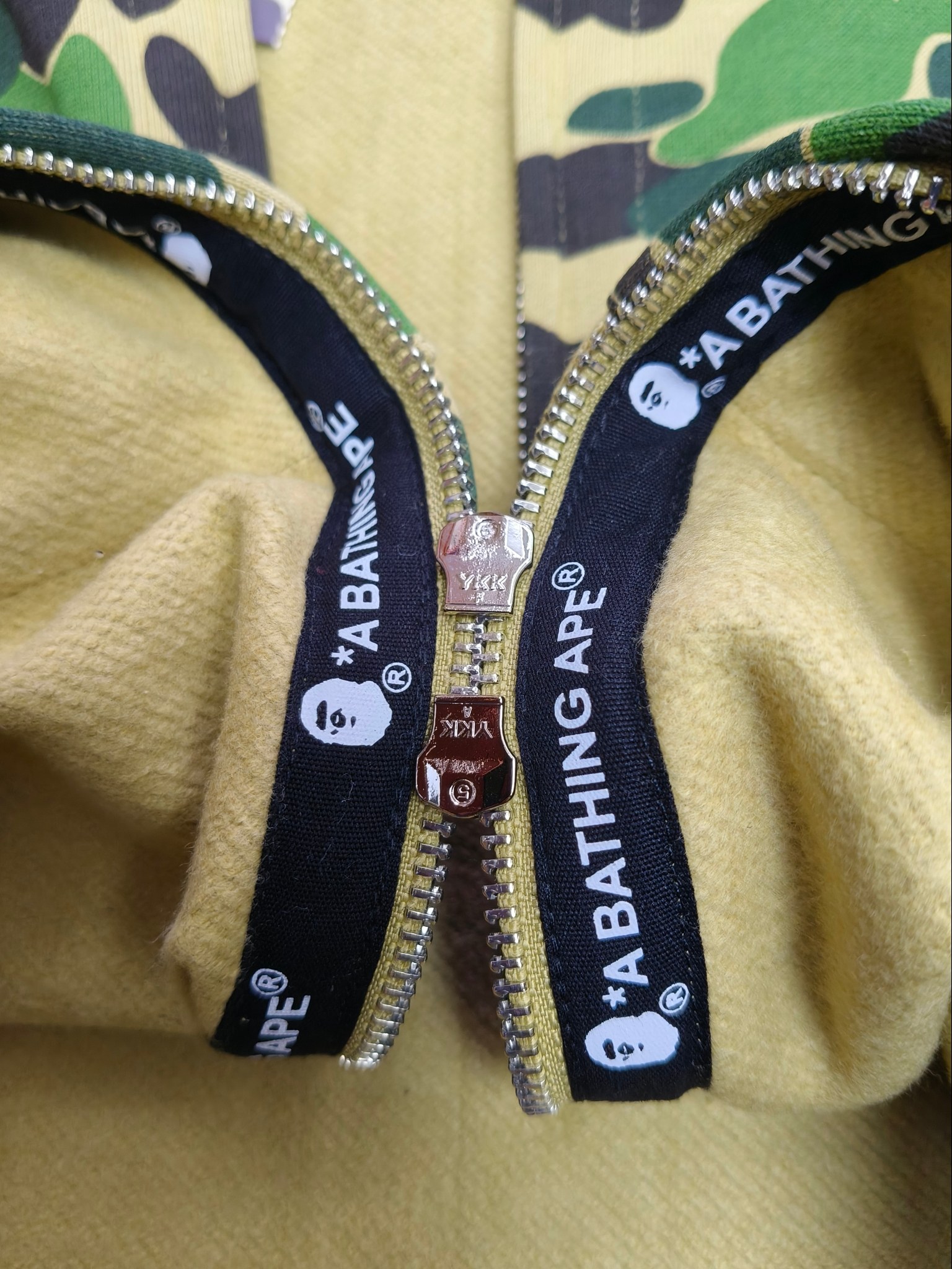 这款衣服是AAAAA 1:1 质量 (非常棒). 使用了和原版一模一样的材料. 商标部分也保持了和Bape一样. 图片拍摄是实物衣服拍摄, 您所收到的实物保证和我们图片一模一样.