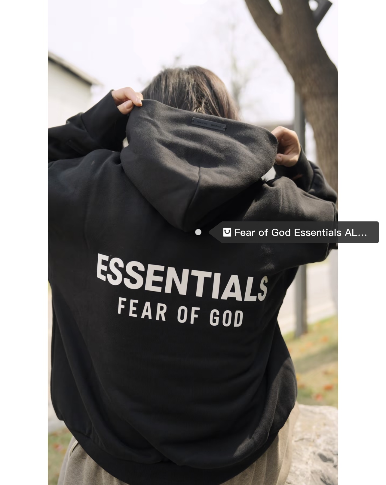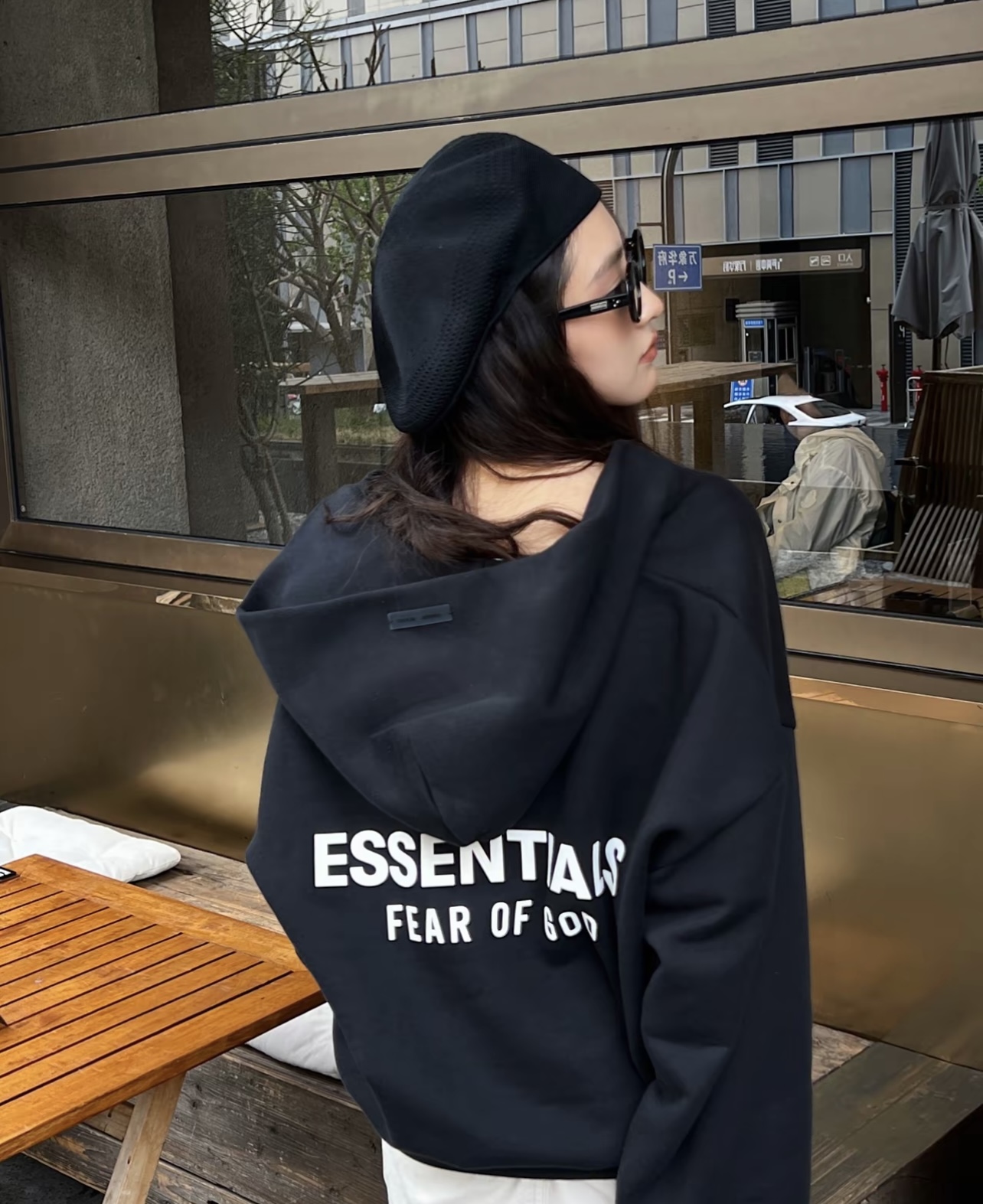 这款衣服是AAAAA 1:1 质量 (非常棒). 使用了和原版一模一样的材料. 商标部分也保持了和ESSENTIALS一样. 图片拍摄是实物衣服拍摄, 您所收到的实物保证和我们图片一模一样.