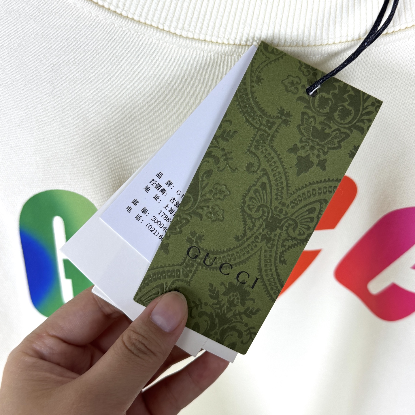 这款衣服是AAAAA 1:1 质量 (非常棒). 使用了和原版一模一样的材料. 商标部分也保持了和古奇/Gucci一样. 图片拍摄是实物衣服拍摄, 您所收到的实物保证和我们图片一模一样.