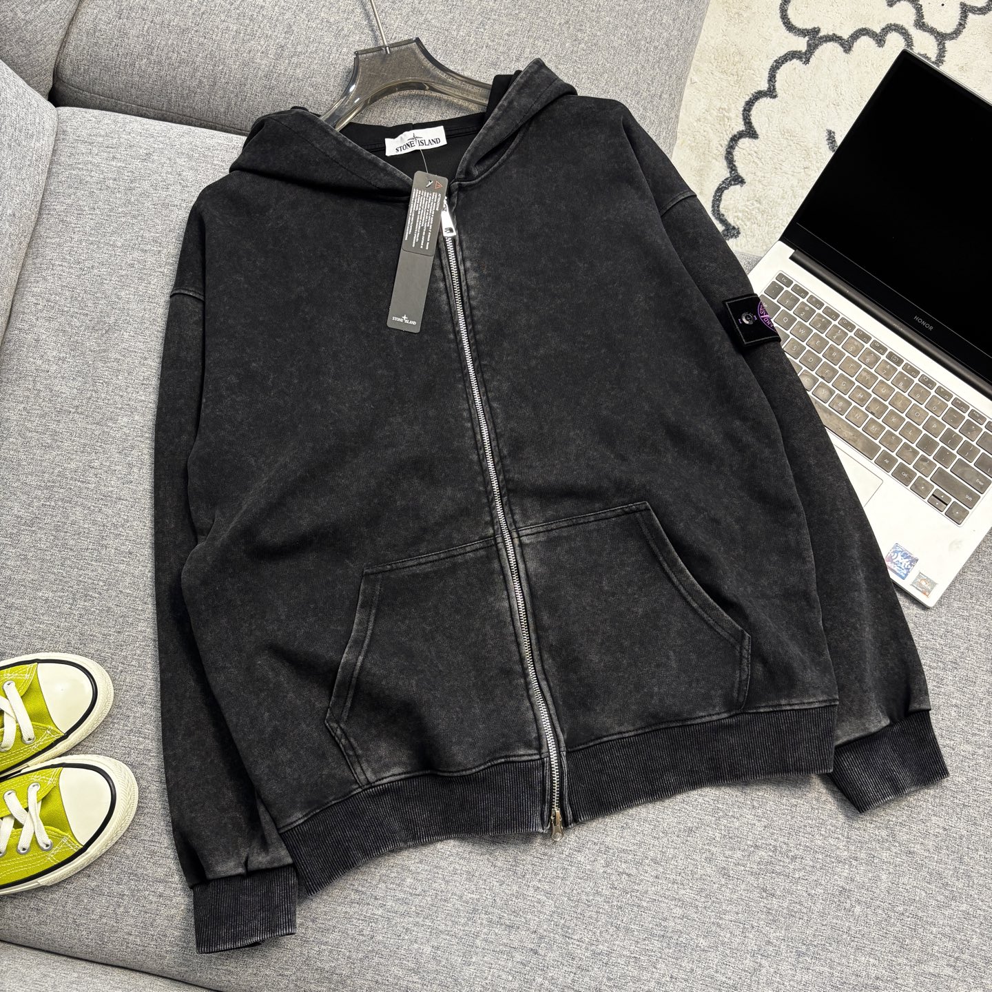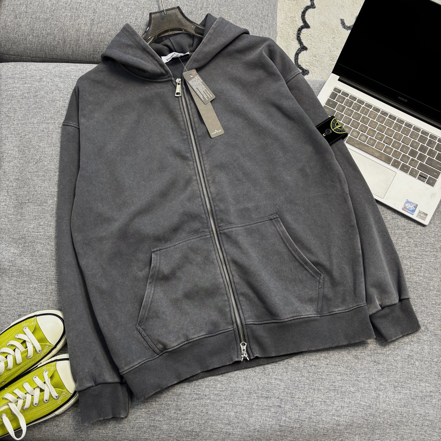这款衣服是AAAAA 1:1 质量 (非常棒). 使用了和原版一模一样的材料. 商标部分也保持了和Stone Island一样. 图片拍摄是实物衣服拍摄, 您所收到的实物保证和我们图片一模一样.