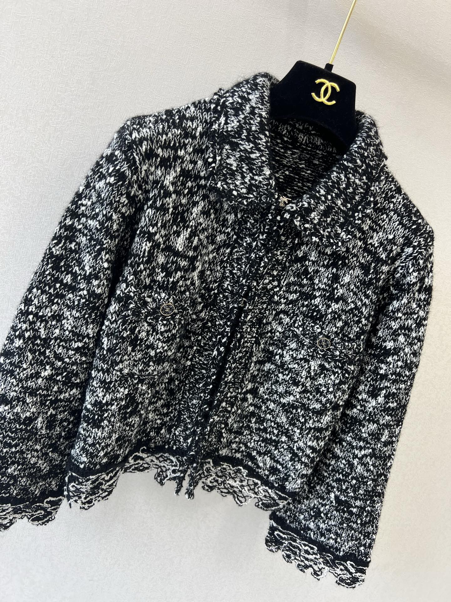 这款衣服是AAAAA 1:1 质量 (非常棒). 使用了和原版一模一样的材料. 商标部分也保持了和香奈儿/Chanel一样. 图片拍摄是实物衣服拍摄, 您所收到的实物保证和我们图片一模一样.