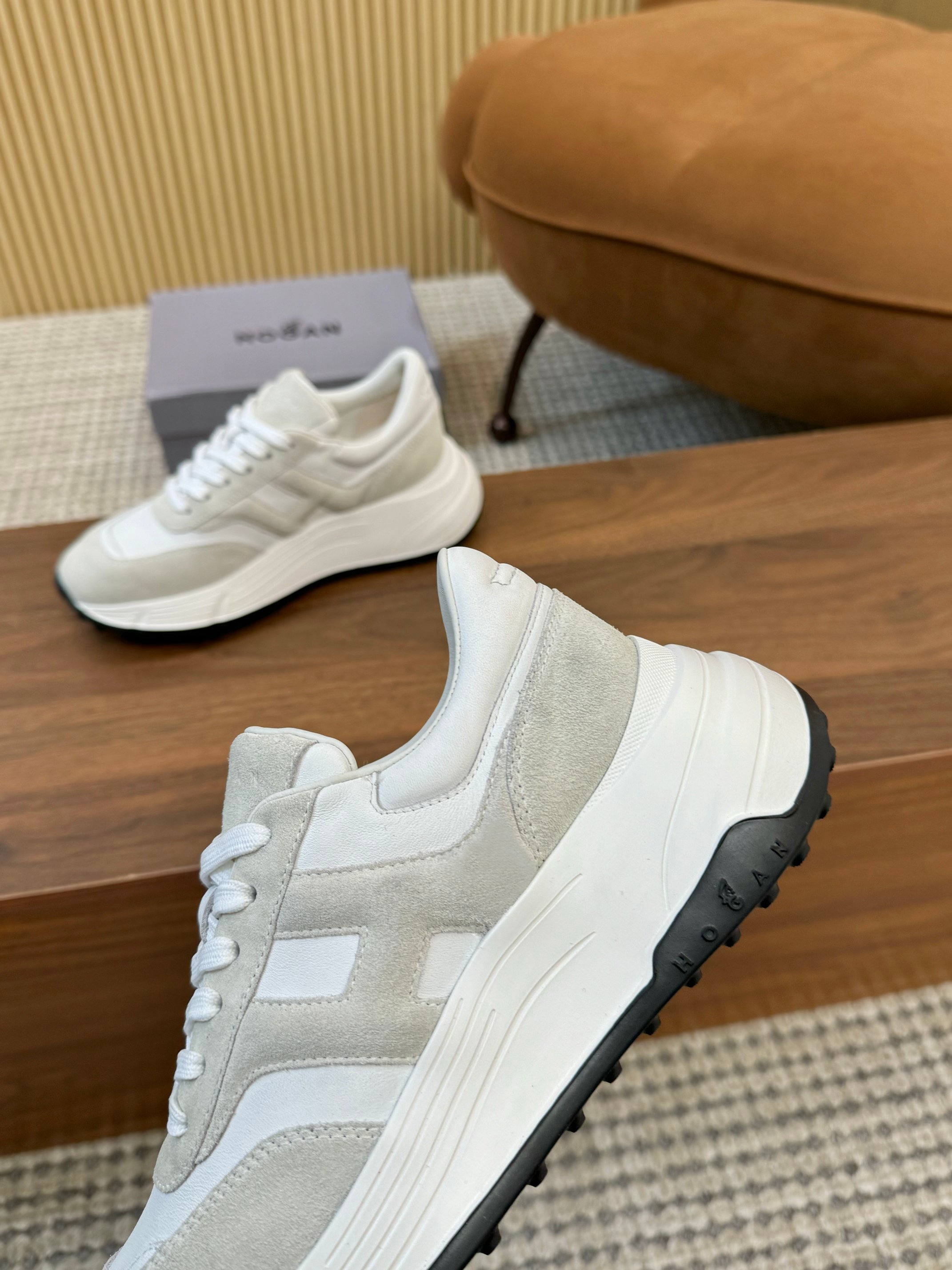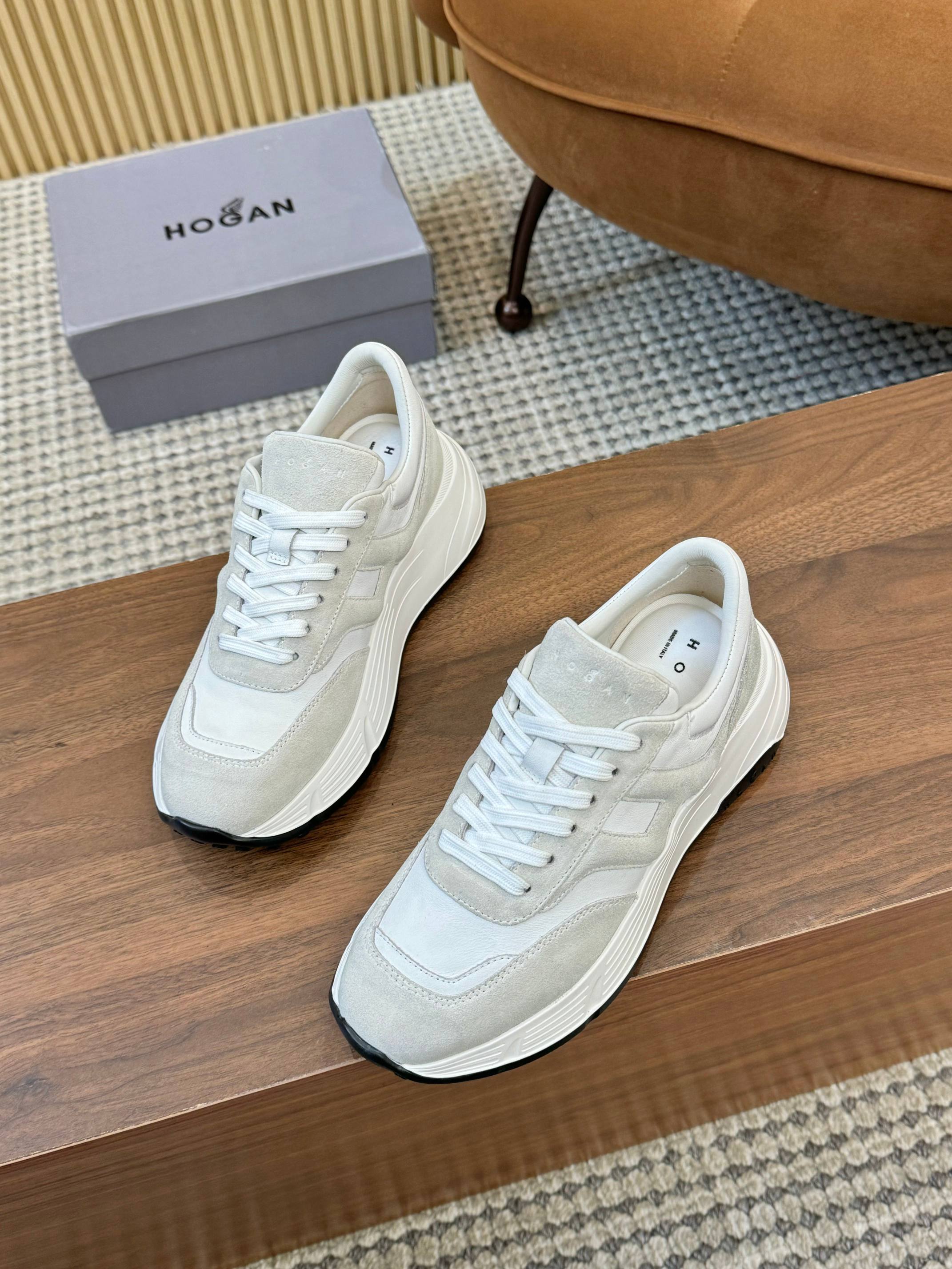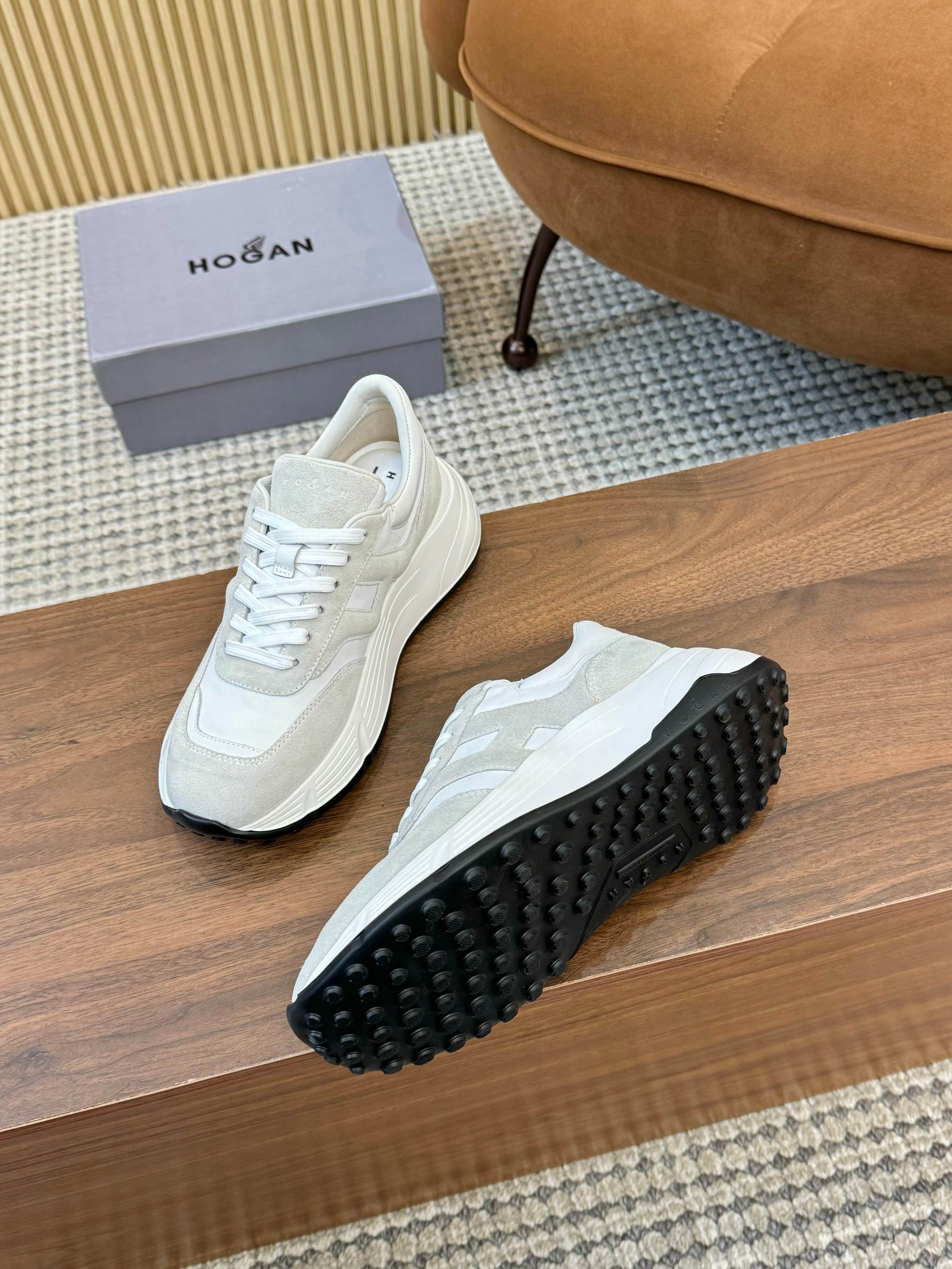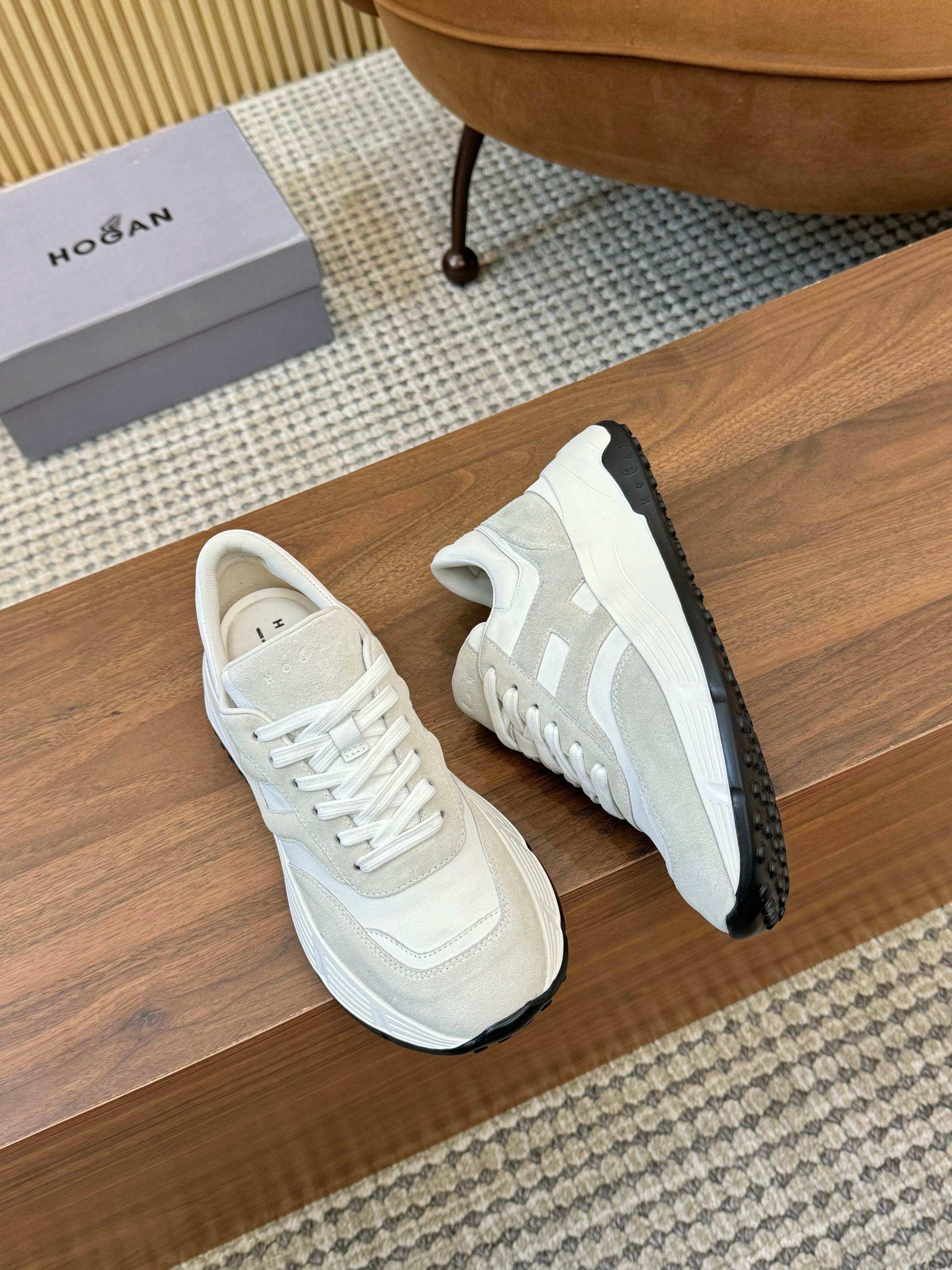 这款鞋子是AAAAA 1:1 质量 (非常棒). 使用了和原版一模一样的材料. 商标部分也保持了和Hogan一样. 图片拍摄是实物鞋子拍摄, 您所收到的实物保证和我们图片一模一样.