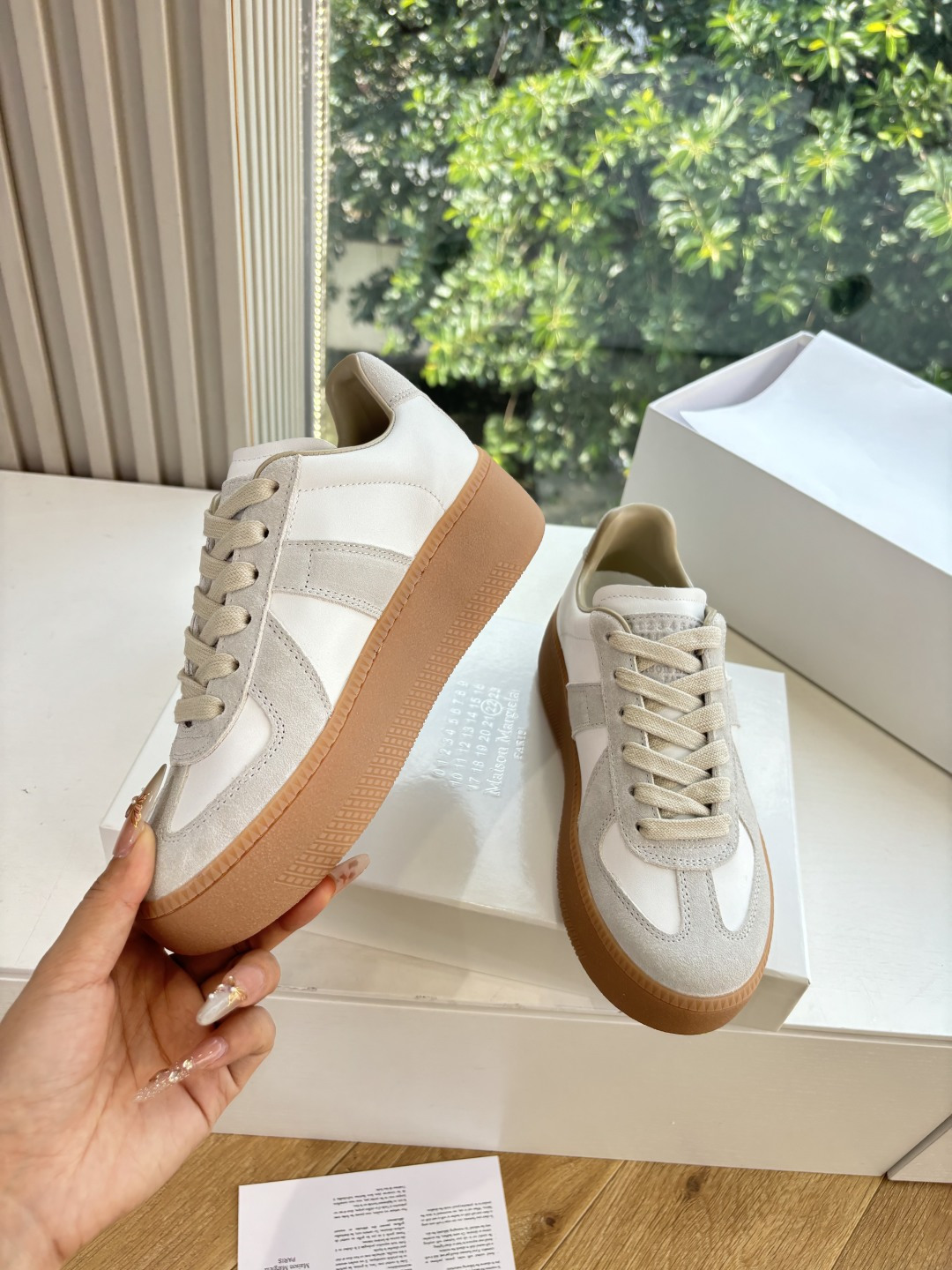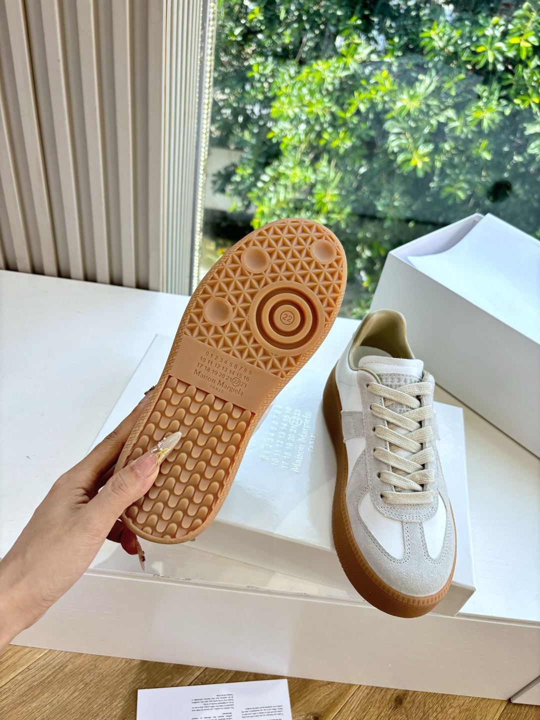 这款鞋子是AAAAA 1:1 质量 (非常棒). 使用了和原版一模一样的材料. 商标部分也保持了和Maison Margiela一样. 图片拍摄是实物鞋子拍摄, 您所收到的实物保证和我们图片一模一样.