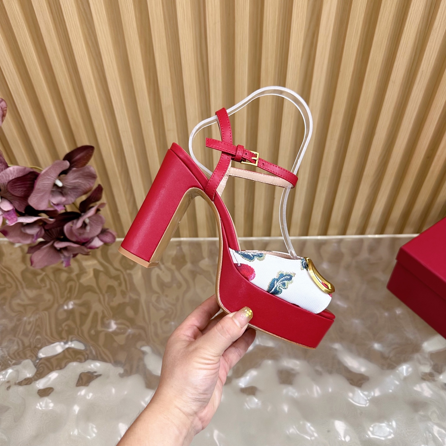 这款鞋子是AAAAA 1:1 质量 (非常棒). 使用了和原版一模一样的材料. 商标部分也保持了和华伦天奴/Valentino一样. 图片拍摄是实物鞋子拍摄, 您所收到的实物保证和我们图片一模一样.