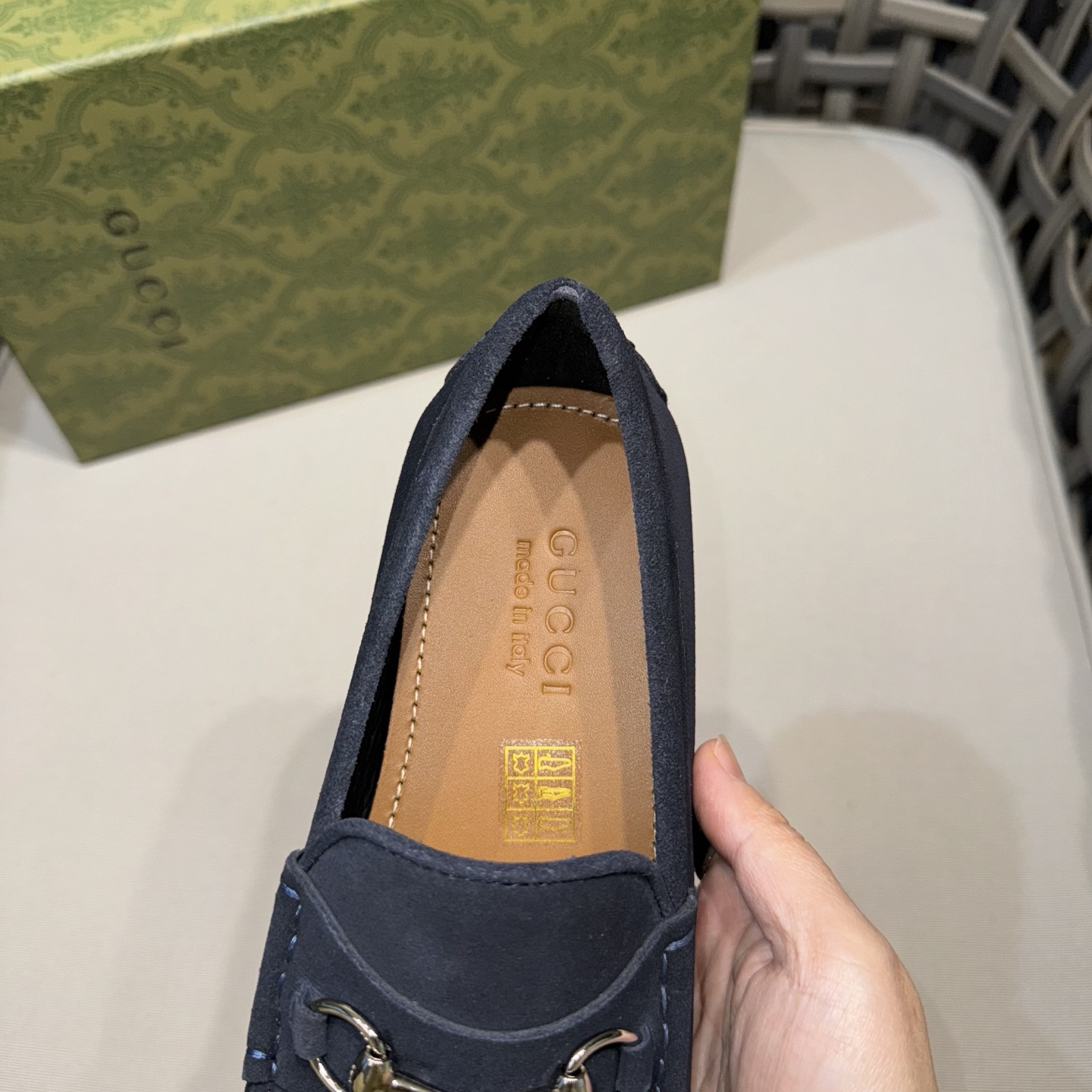 这款鞋子是AAAAA 1:1 质量 (非常棒). 使用了和原版一模一样的材料. 商标部分也保持了和古奇/Gucci一样. 图片拍摄是实物鞋子拍摄, 您所收到的实物保证和我们图片一模一样.