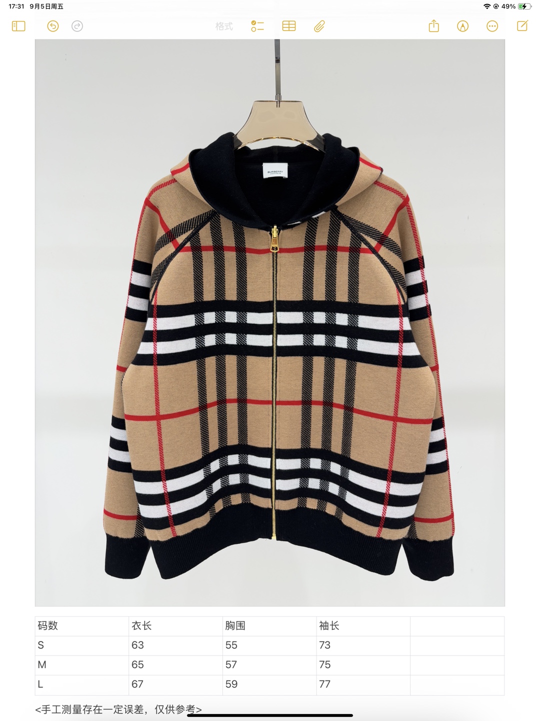 这款衣服是AAAAA 1:1 质量 (非常棒). 使用了和原版一模一样的材料. 商标部分也保持了和巴宝莉/Burberry一样. 图片拍摄是实物衣服拍摄, 您所收到的实物保证和我们图片一模一样.