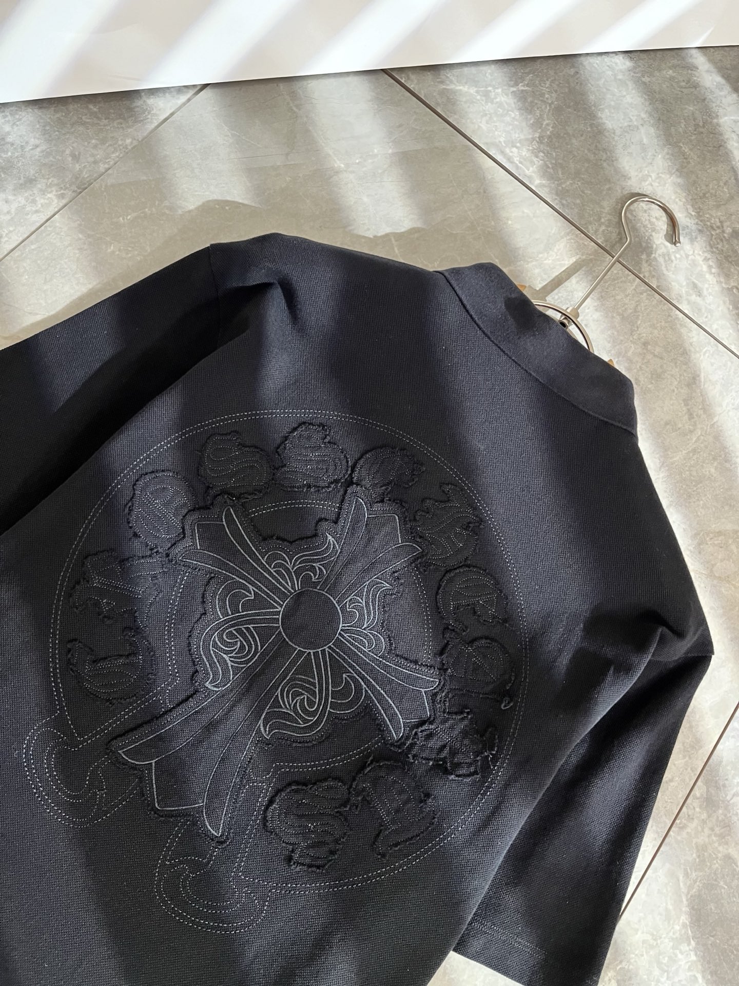这款衣服是AAAAA 1:1 质量 (非常棒). 使用了和原版一模一样的材料. 商标部分也保持了和克罗心/Chrome Hearts一样. 图片拍摄是实物衣服拍摄, 您所收到的实物保证和我们图片一模一样.