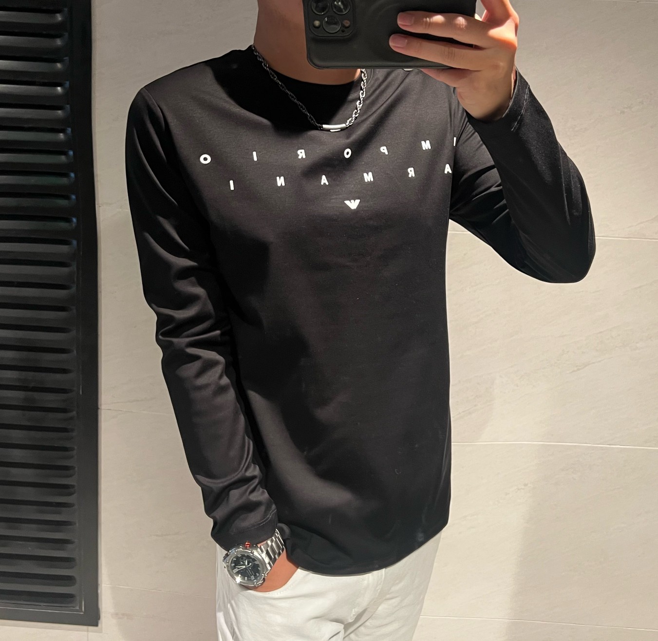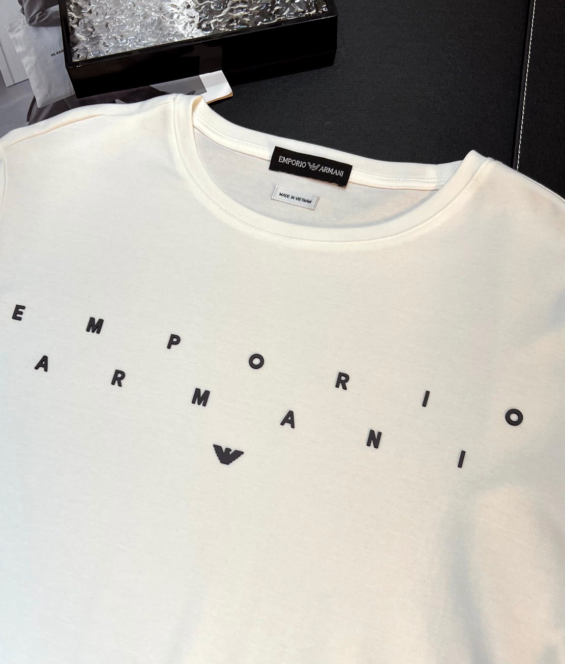这款衣服是AAAAA 1:1 质量 (非常棒). 使用了和原版一模一样的材料. 商标部分也保持了和阿玛尼/Armani一样. 图片拍摄是实物衣服拍摄, 您所收到的实物保证和我们图片一模一样.