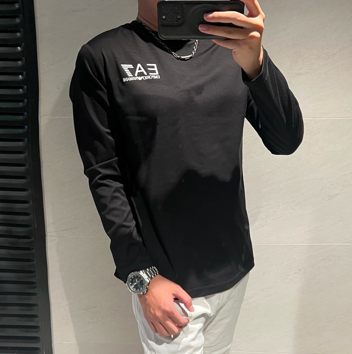 这款衣服是AAAAA 1:1 质量 (非常棒). 使用了和原版一模一样的材料. 商标部分也保持了和阿玛尼/Armani一样. 图片拍摄是实物衣服拍摄, 您所收到的实物保证和我们图片一模一样.