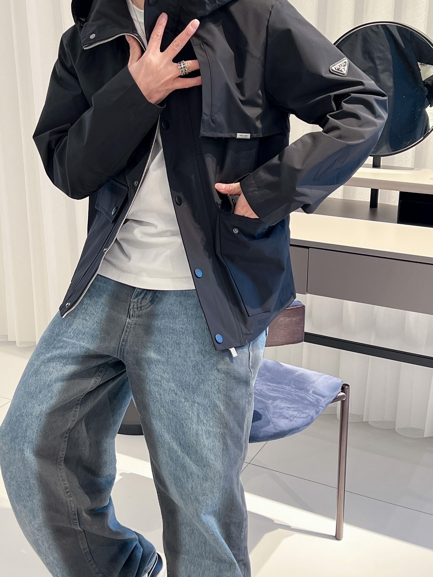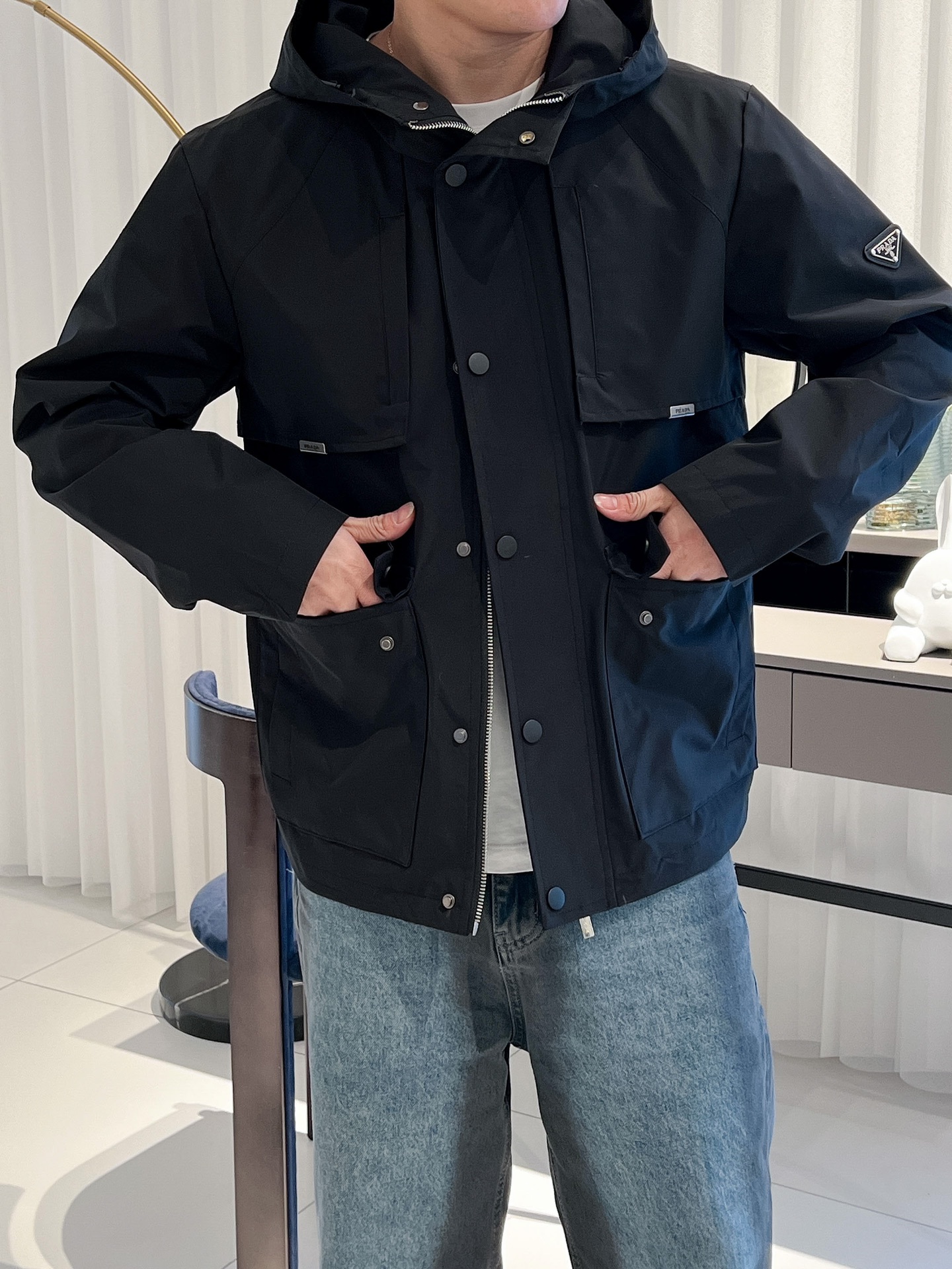 这款衣服是AAAAA 1:1 质量 (非常棒). 使用了和原版一模一样的材料. 商标部分也保持了和普拉达/Prada一样. 图片拍摄是实物衣服拍摄, 您所收到的实物保证和我们图片一模一样.