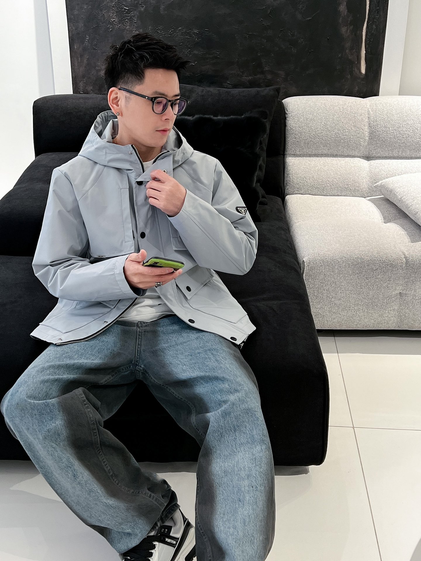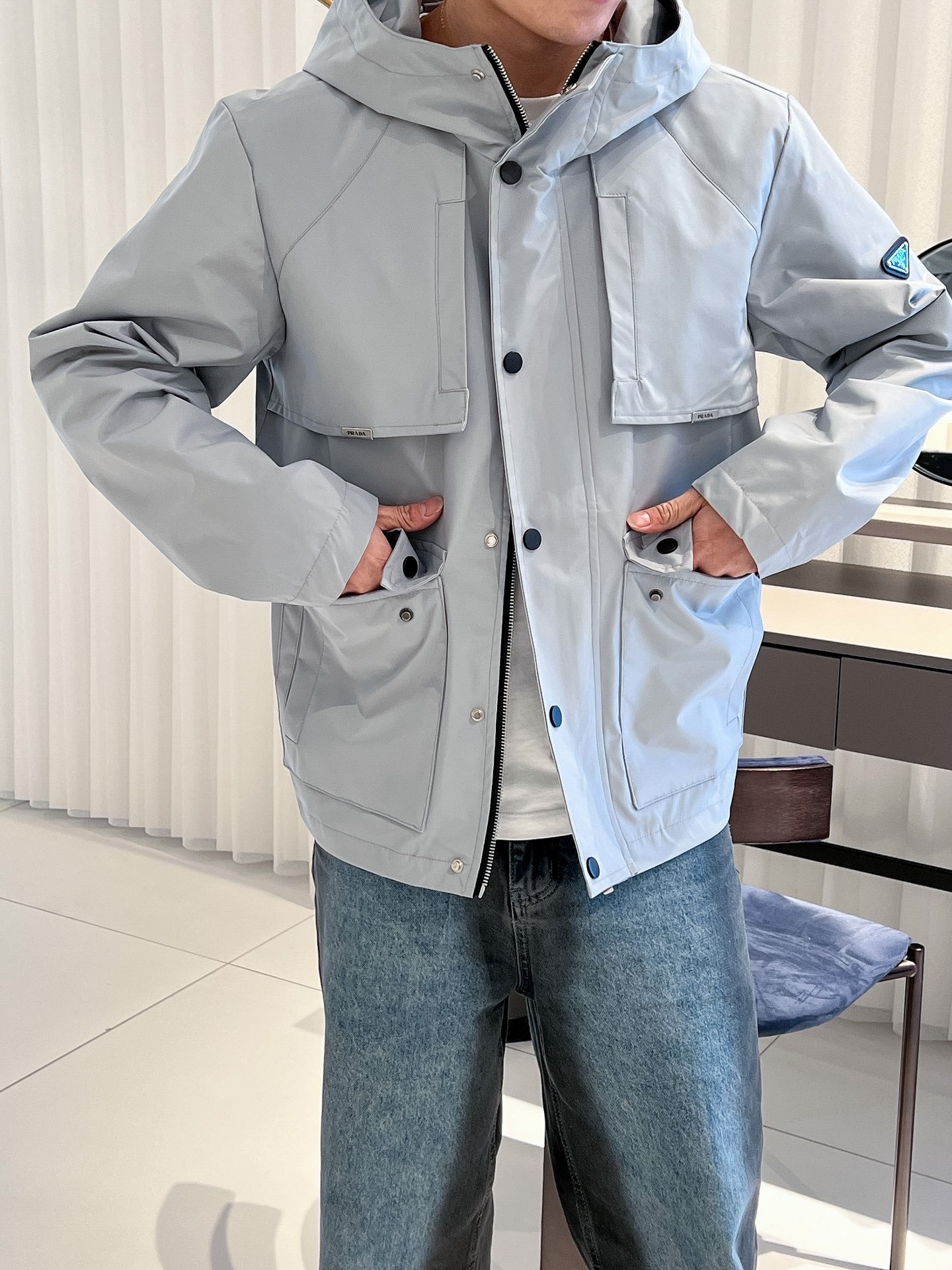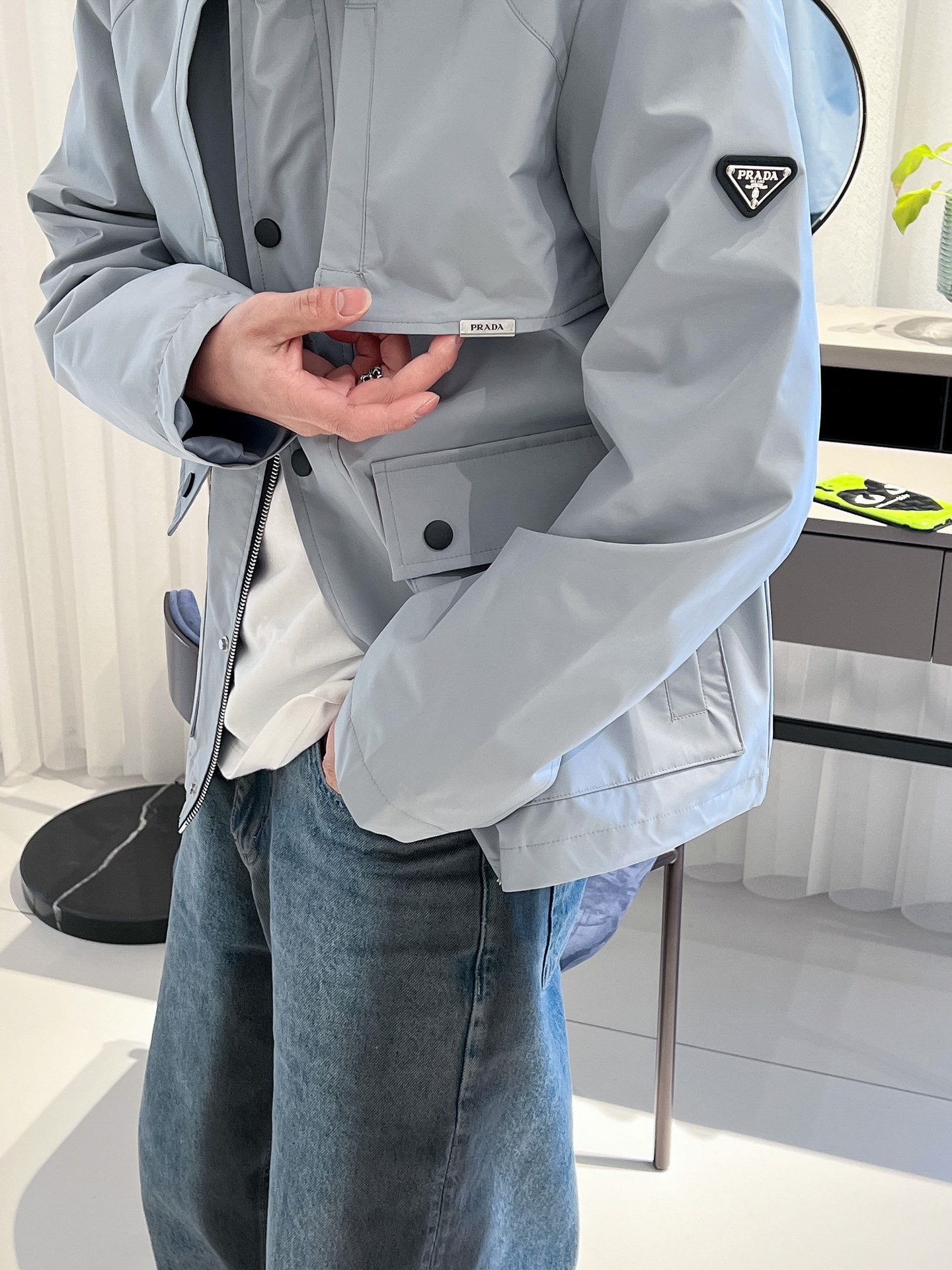 这款衣服是AAAAA 1:1 质量 (非常棒). 使用了和原版一模一样的材料. 商标部分也保持了和普拉达/Prada一样. 图片拍摄是实物衣服拍摄, 您所收到的实物保证和我们图片一模一样.