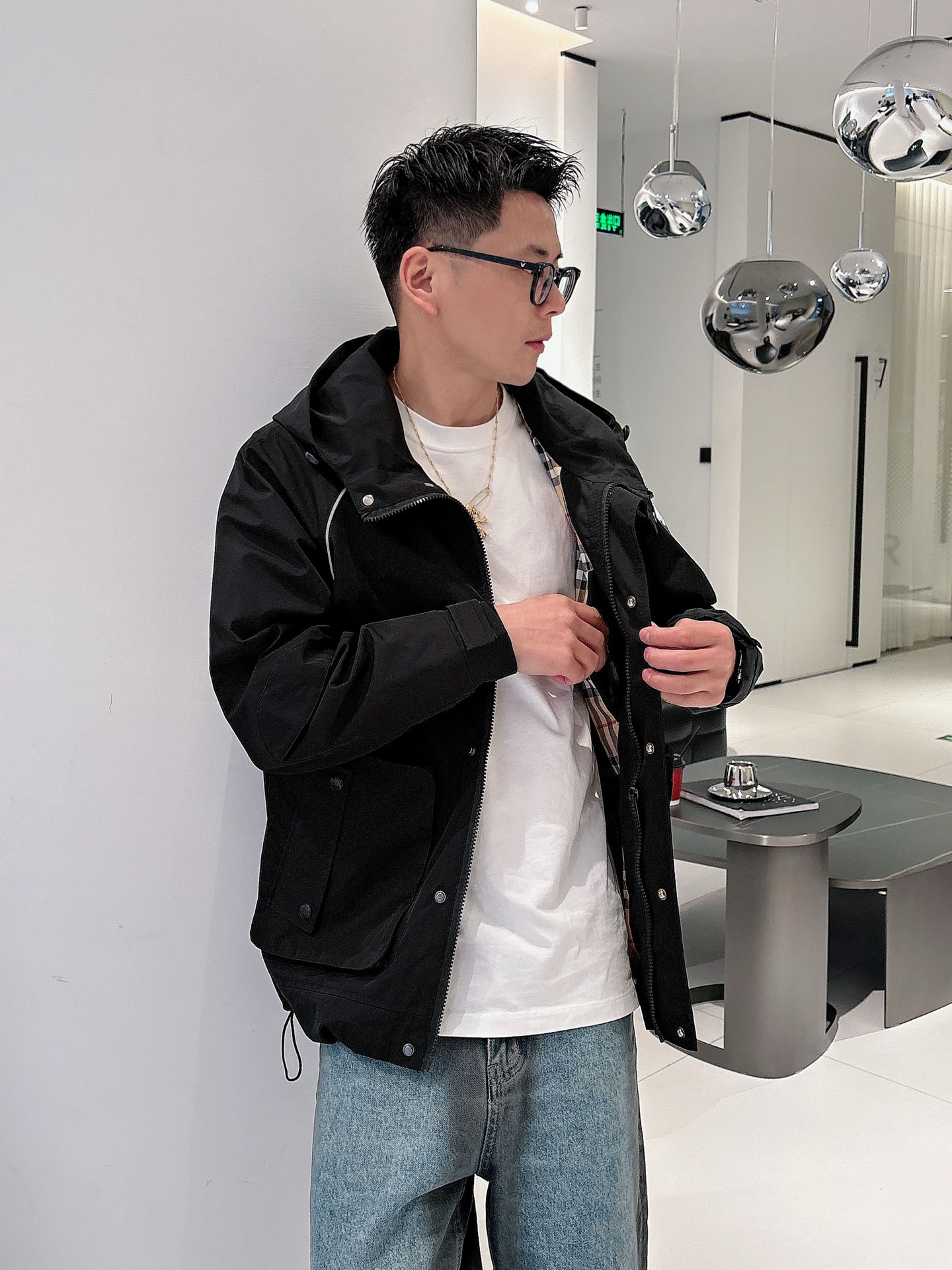 这款衣服是AAAAA 1:1 质量 (非常棒). 使用了和原版一模一样的材料. 商标部分也保持了和巴宝莉/Burberry一样. 图片拍摄是实物衣服拍摄, 您所收到的实物保证和我们图片一模一样.