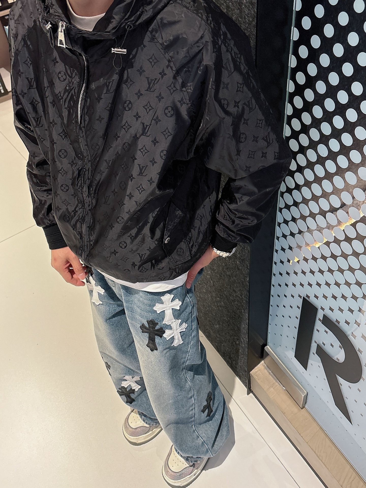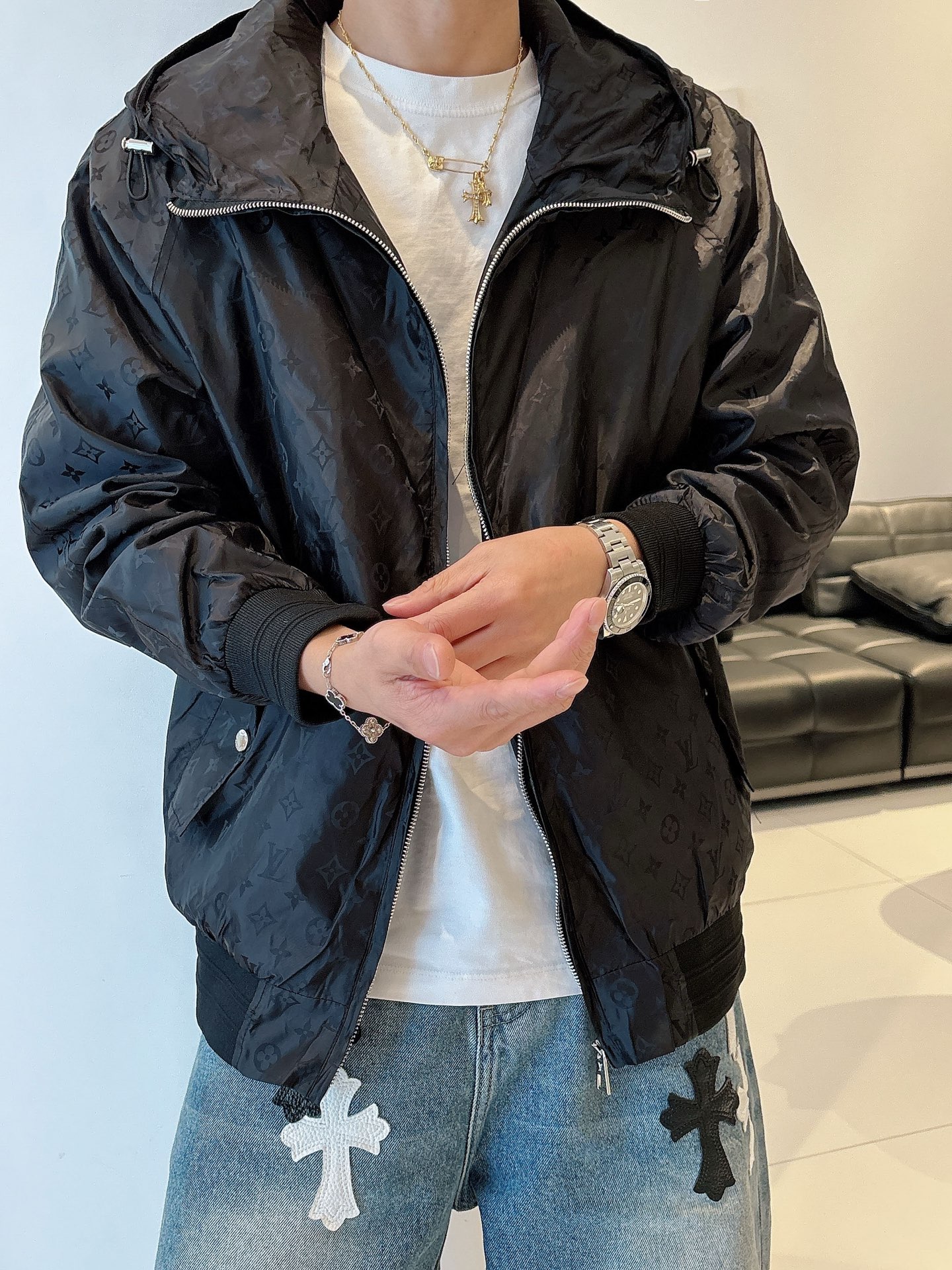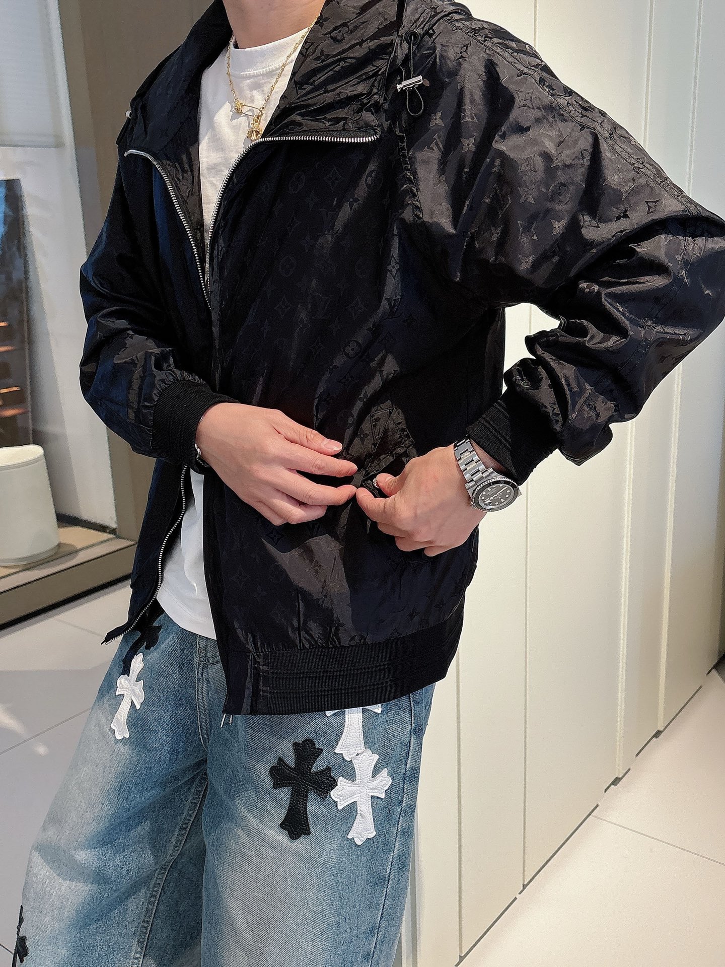 这款衣服是AAAAA 1:1 质量 (非常棒). 使用了和原版一模一样的材料. 商标部分也保持了和路易威登/Louis Vuitton一样. 图片拍摄是实物衣服拍摄, 您所收到的实物保证和我们图片一模一样.