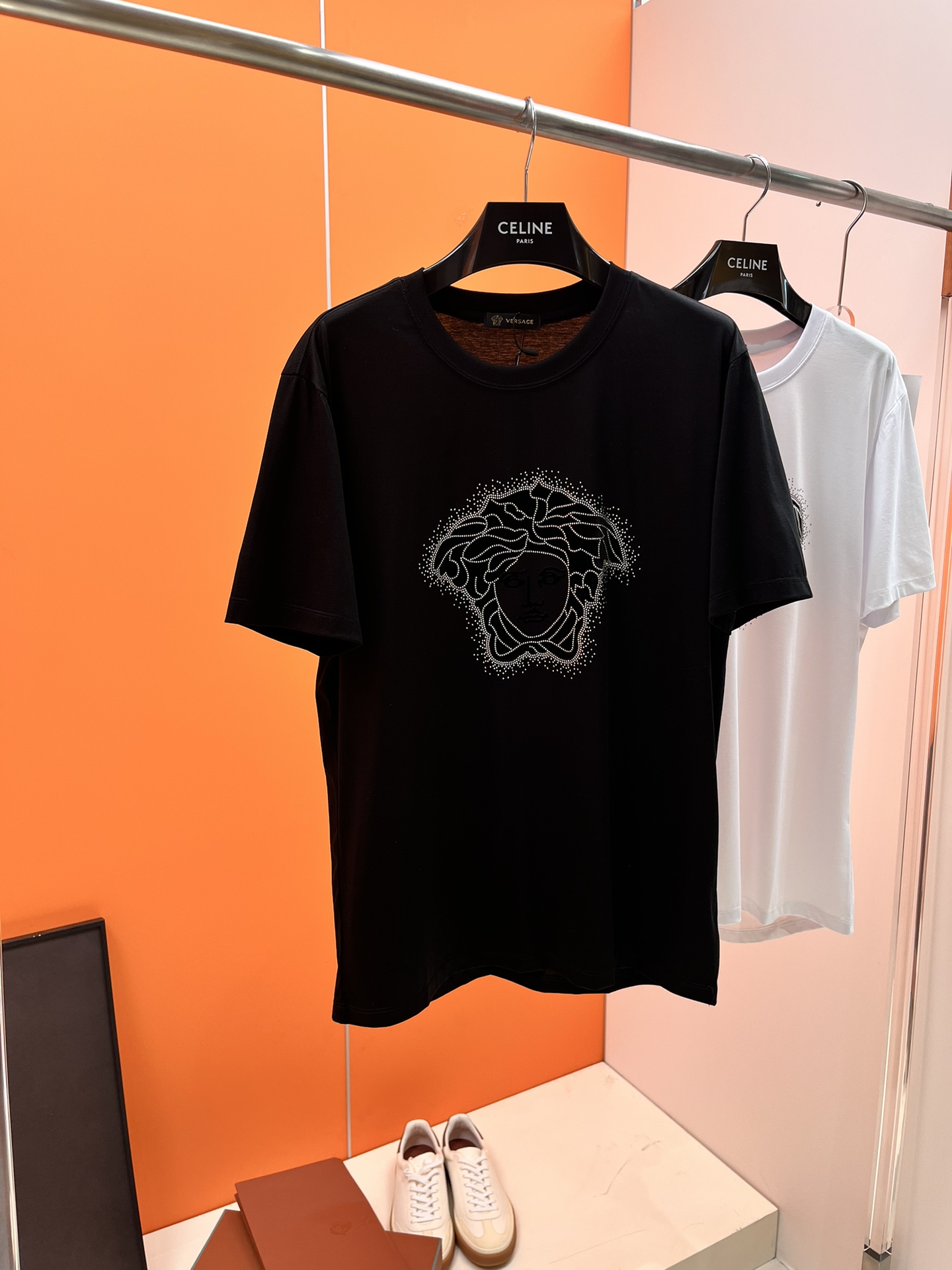 这款衣服是AAAAA 1:1 质量 (非常棒). 使用了和原版一模一样的材料. 商标部分也保持了和范思哲/Versace一样. 图片拍摄是实物衣服拍摄, 您所收到的实物保证和我们图片一模一样.