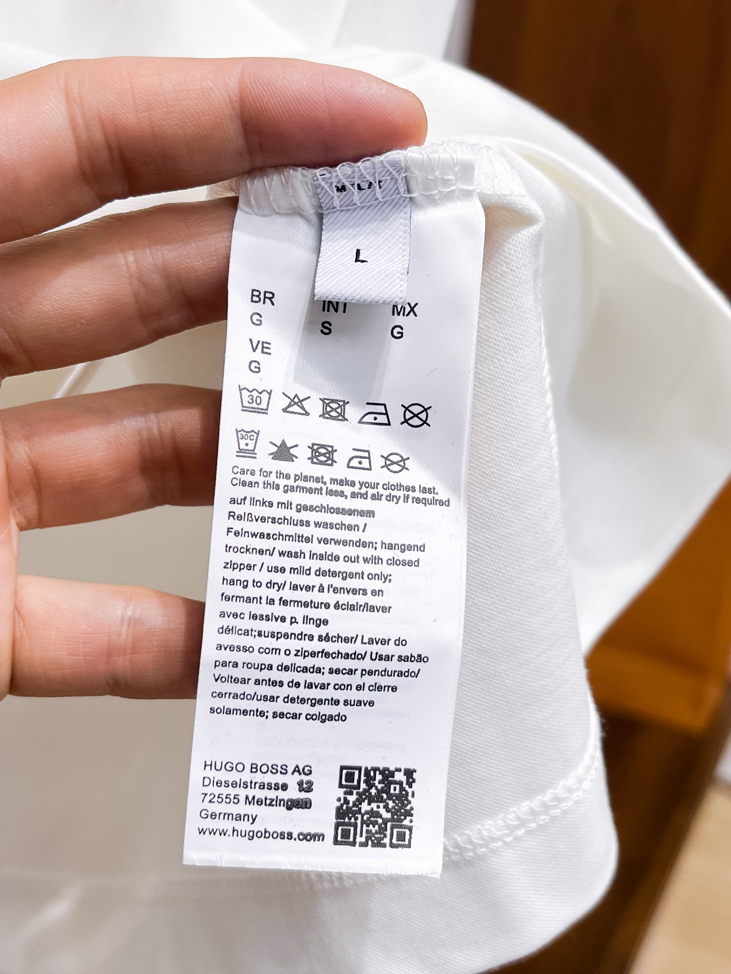 这款衣服是AAAAA 1:1 质量 (非常棒). 使用了和原版一模一样的材料. 商标部分也保持了和BOSS一样. 图片拍摄是实物衣服拍摄, 您所收到的实物保证和我们图片一模一样.