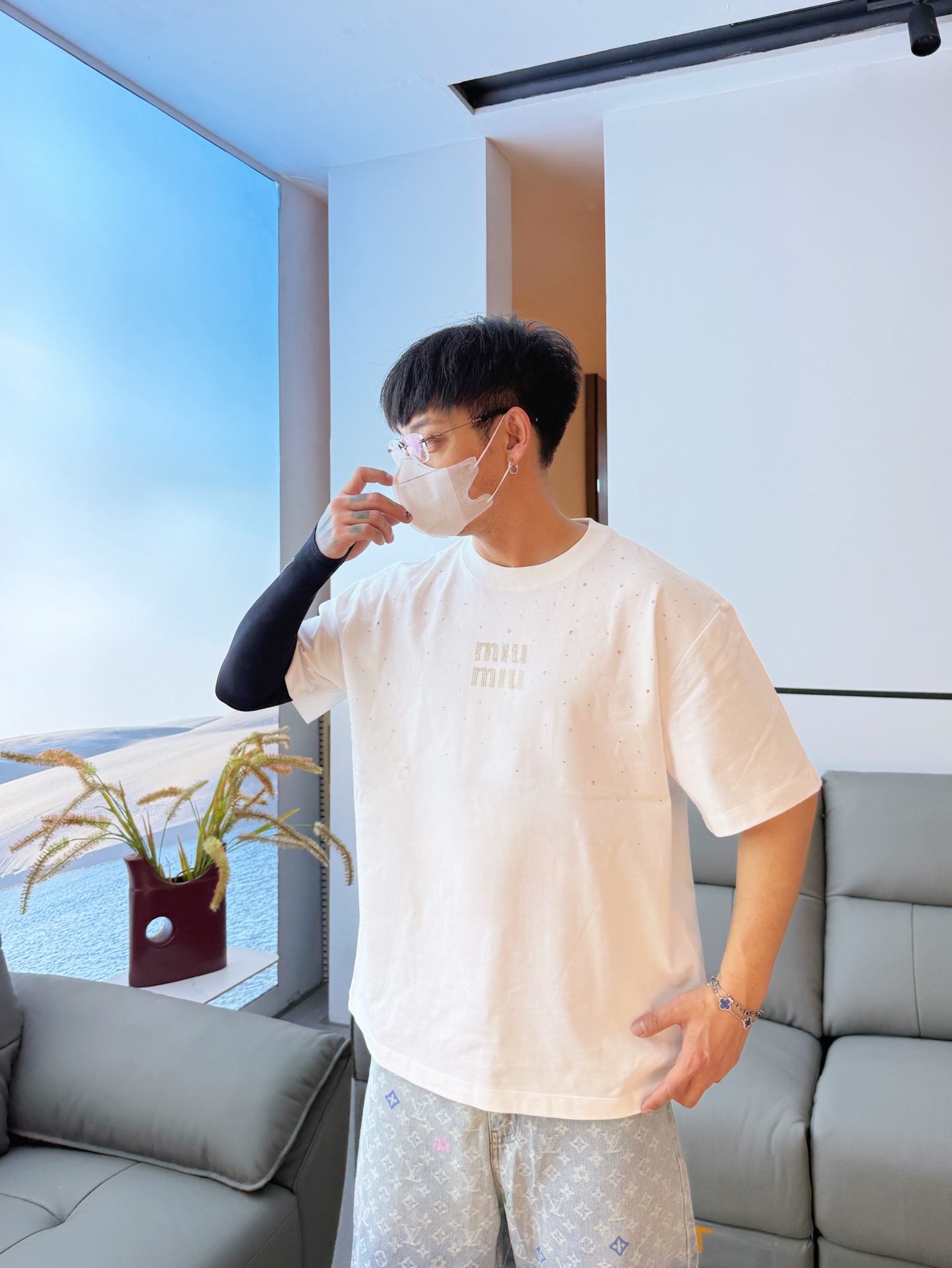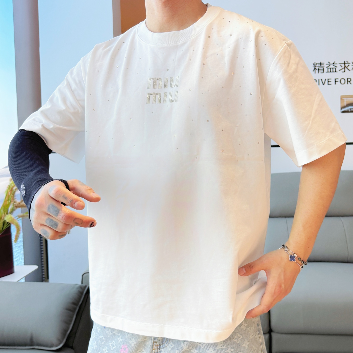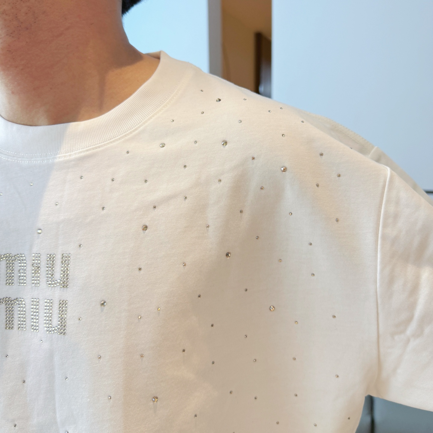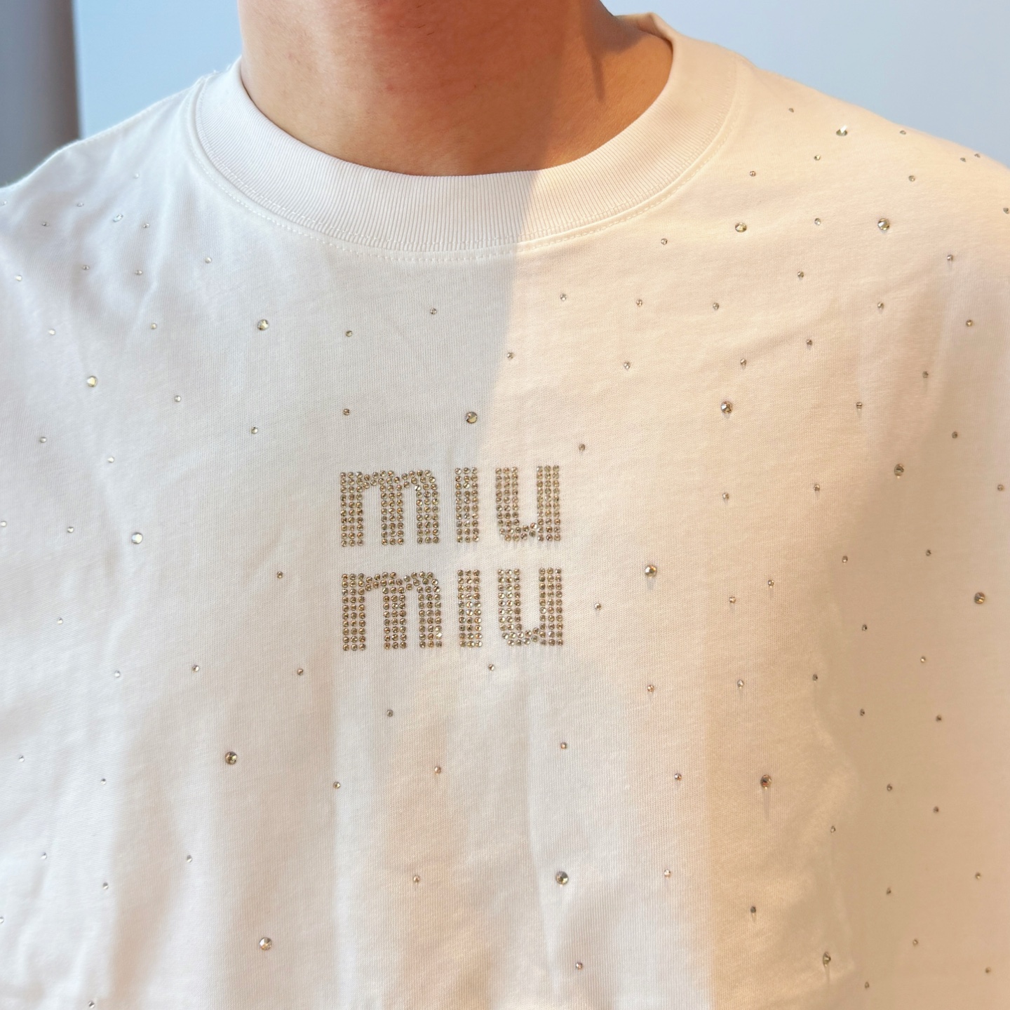 这款衣服是AAAAA 1:1 质量 (非常棒). 使用了和原版一模一样的材料. 商标部分也保持了和缪缪/Miu Miu一样. 图片拍摄是实物衣服拍摄, 您所收到的实物保证和我们图片一模一样.