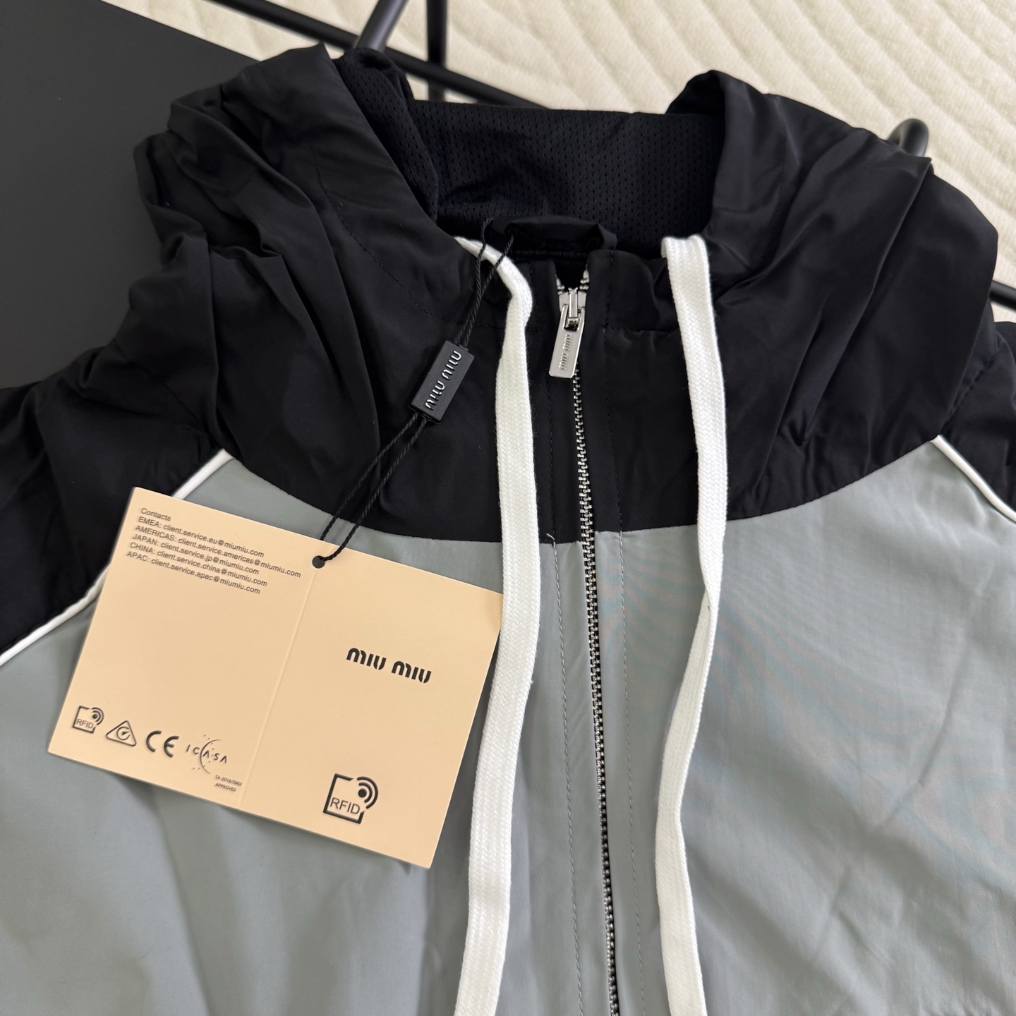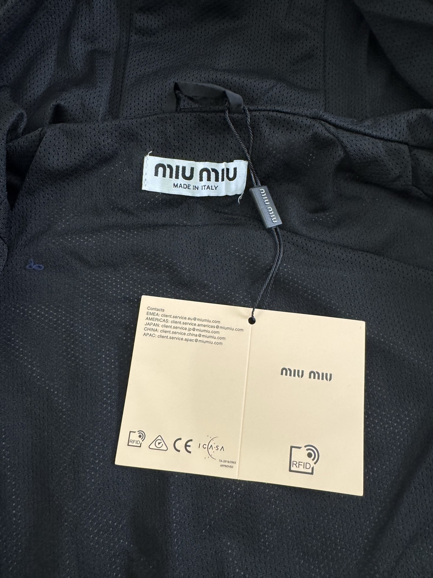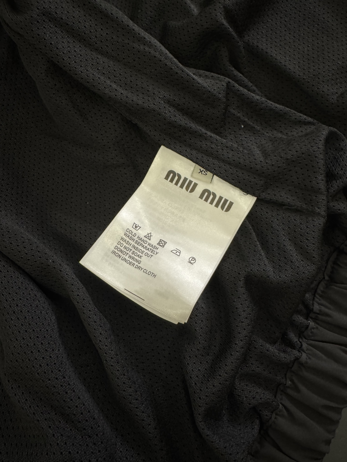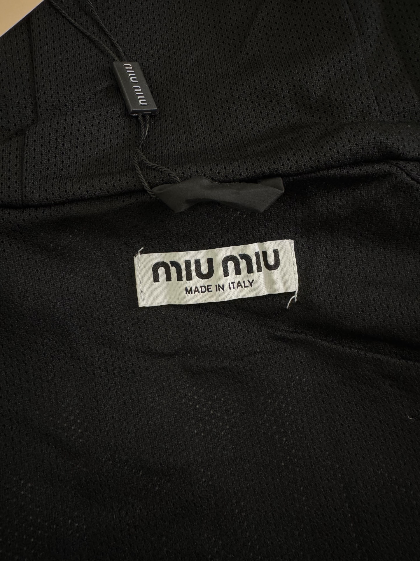 这款衣服是AAAAA 1:1 质量 (非常棒). 使用了和原版一模一样的材料. 商标部分也保持了和缪缪/Miu Miu一样. 图片拍摄是实物衣服拍摄, 您所收到的实物保证和我们图片一模一样.
