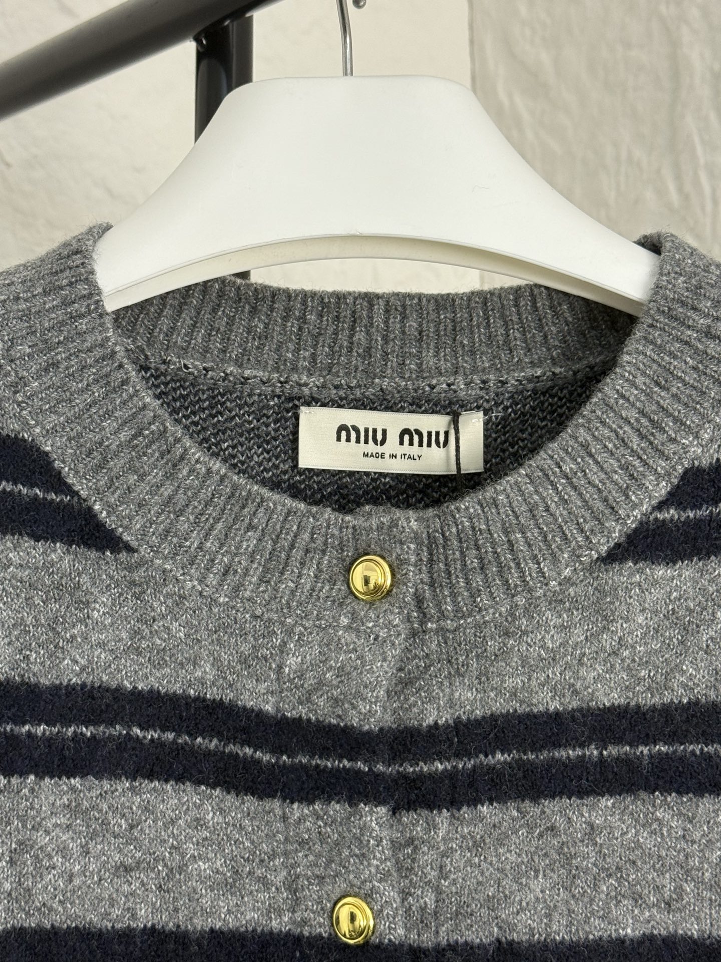 这款衣服是AAAAA 1:1 质量 (非常棒). 使用了和原版一模一样的材料. 商标部分也保持了和缪缪/Miu Miu一样. 图片拍摄是实物衣服拍摄, 您所收到的实物保证和我们图片一模一样.