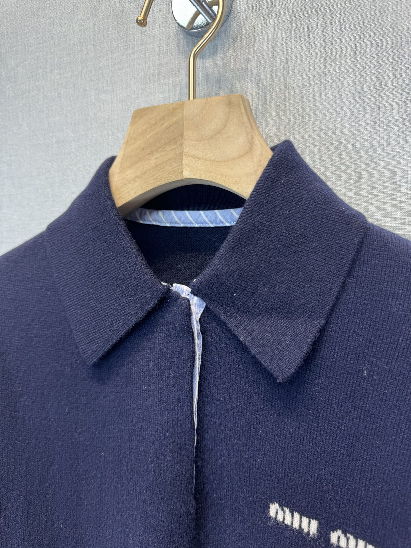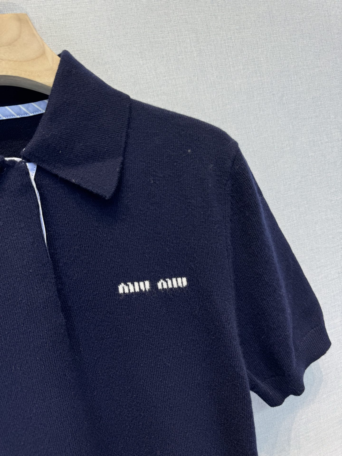 这款衣服是AAAAA 1:1 质量 (非常棒). 使用了和原版一模一样的材料. 商标部分也保持了和缪缪/Miu Miu一样. 图片拍摄是实物衣服拍摄, 您所收到的实物保证和我们图片一模一样.