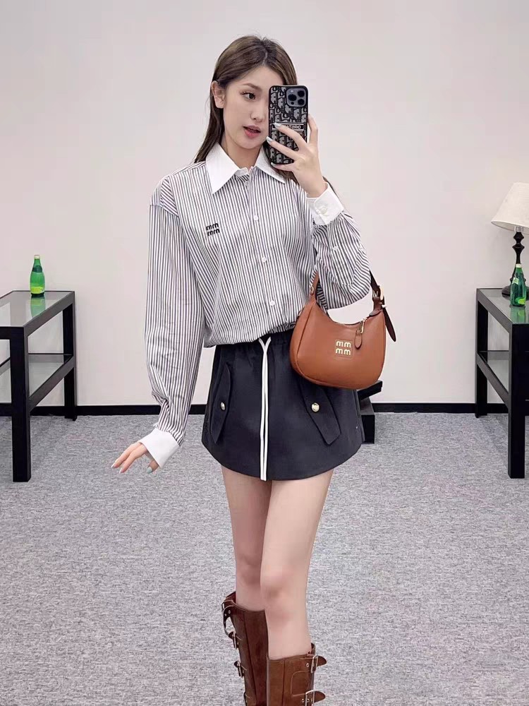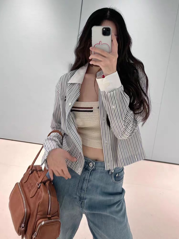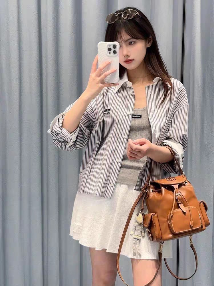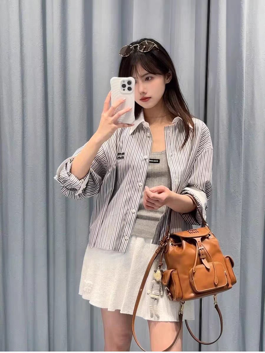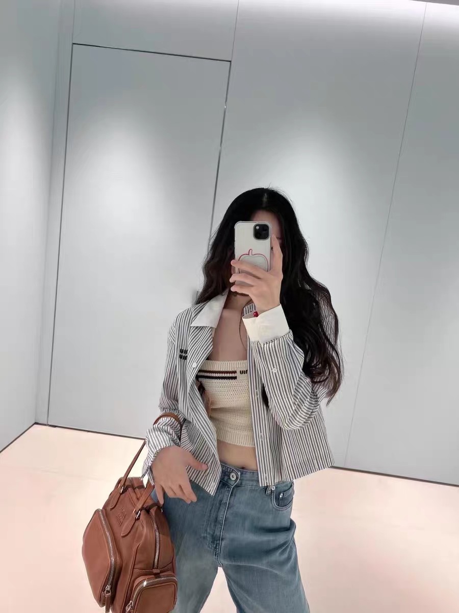 这款衣服是AAAAA 1:1 质量 (非常棒). 使用了和原版一模一样的材料. 商标部分也保持了和缪缪/Miu Miu一样. 图片拍摄是实物衣服拍摄, 您所收到的实物保证和我们图片一模一样.